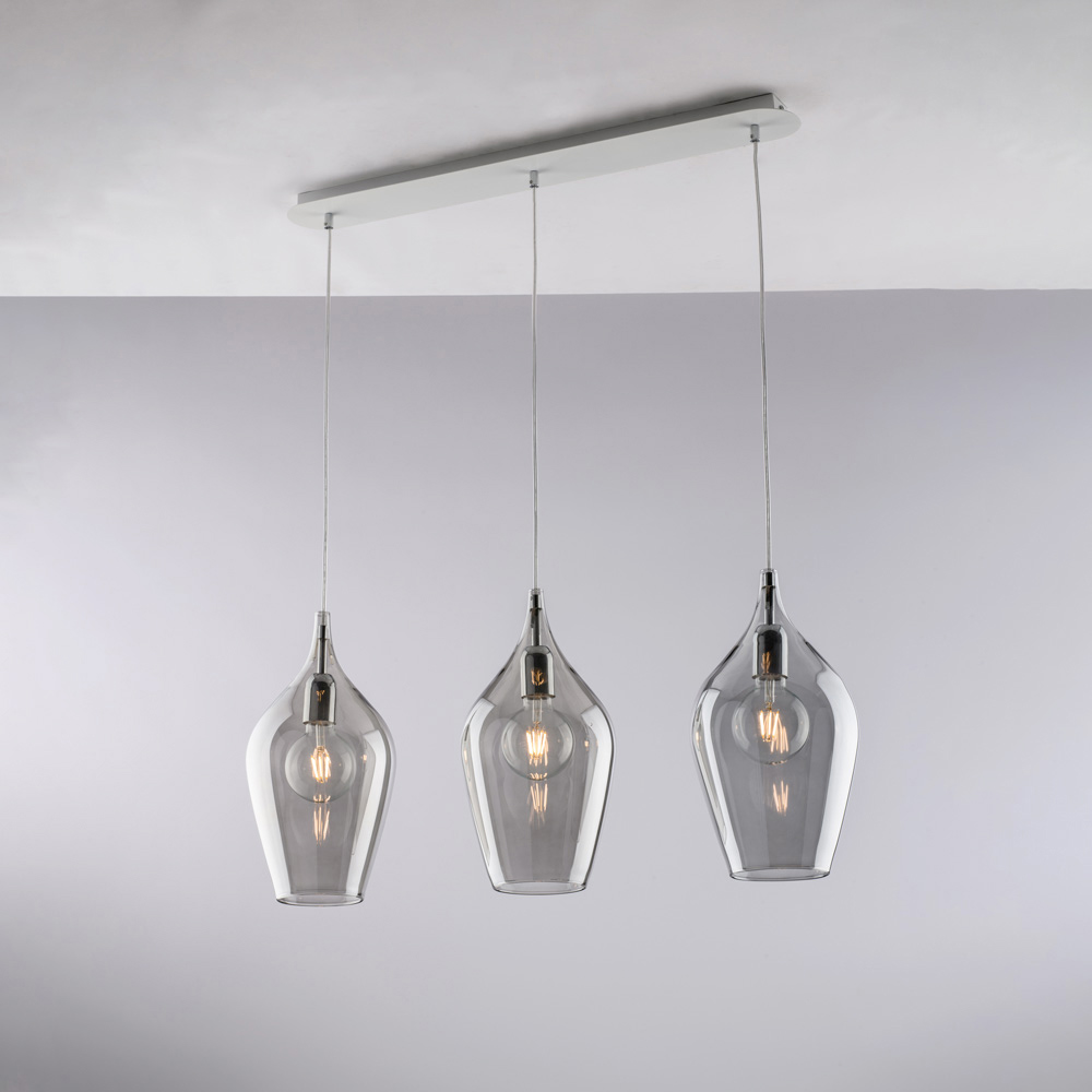 Denne pendellampe fås i transparent , ravfarvet eller grå finish og giver dig mulighed for at tilpasse atmosfæren i dit rum: lys og minimalistisk i den transparente version, varm og omsluttende i ravfarvet, diskret og sofistikeret i grå. Den er perfekt til køkkenøer , spiseborde , bordplader , åbne rum og designermiljøer .