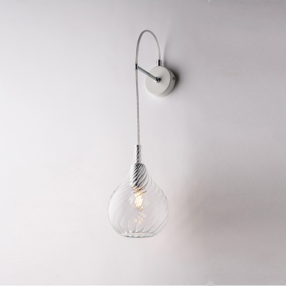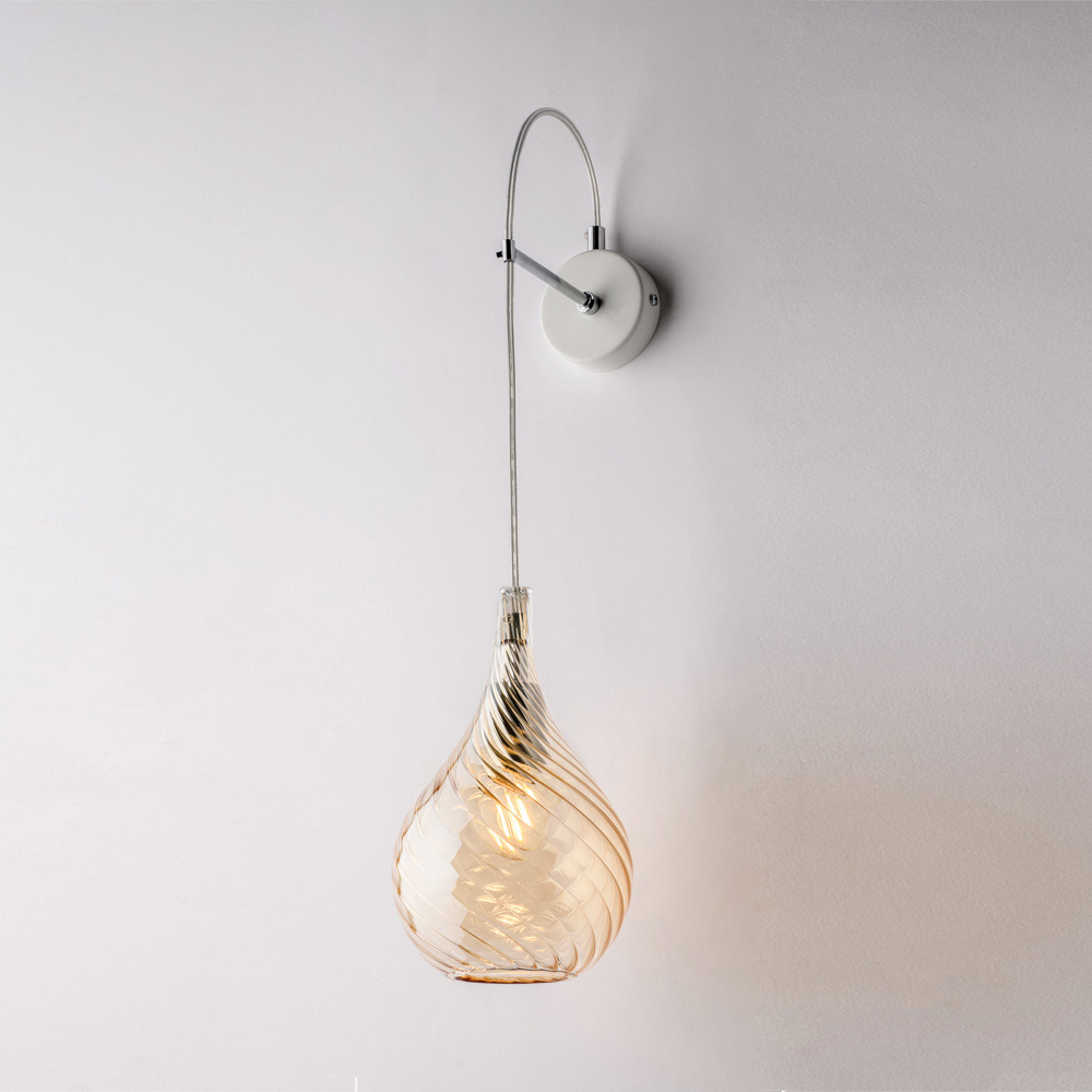 Denne væglampe fås i transparent , rav eller grå finish og passer til en række forskellige indretningsstile: lys og diskret i den transparente version, varm og omsluttende i rav, moderne og elegant i grå. Den er ideel til gange, soveværelser, opholdsrum, entréer og designerkonterum , både som enkelt lyspunkt eller i en komposition.