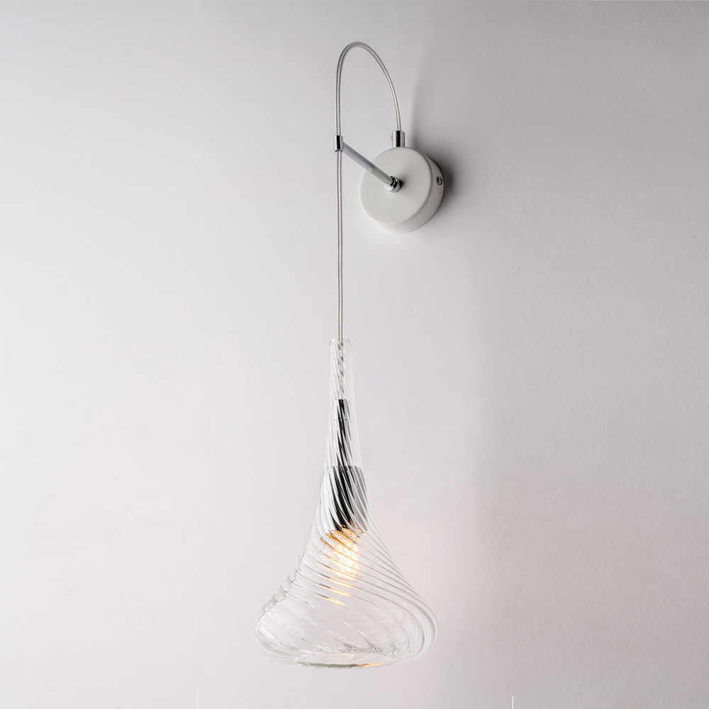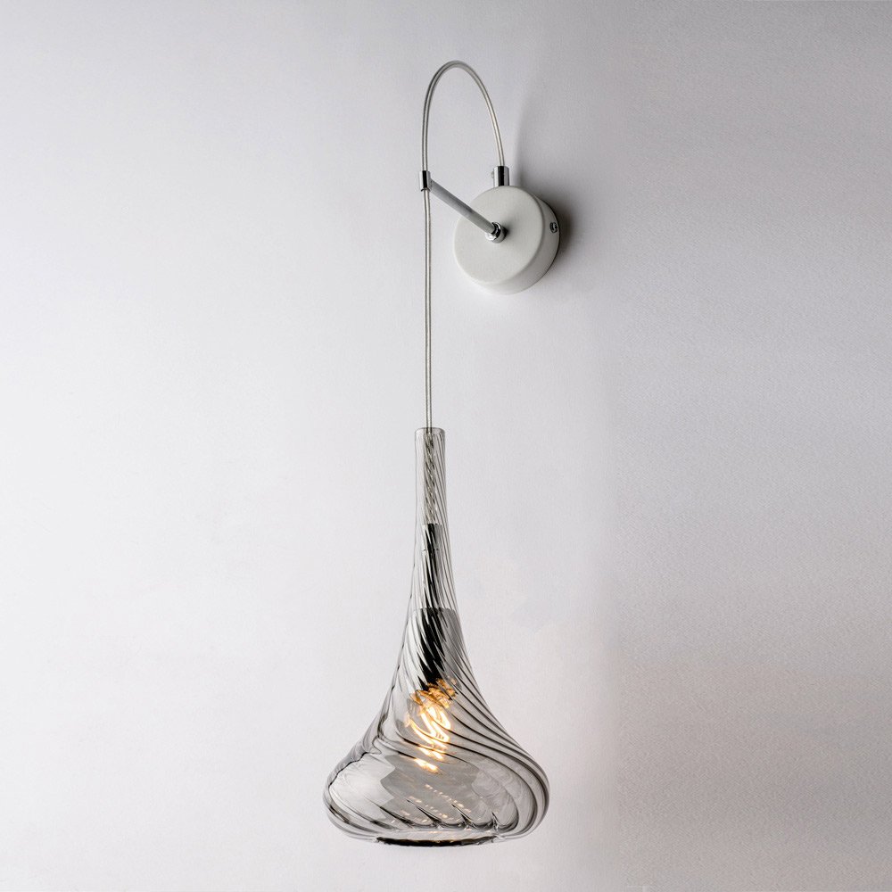 Denne væglampe fås i transparent , ravgul eller grå finish og giver dig mulighed for at tilpasse atmosfæren i dit rum: lys og luftig i den transparente version, varm og omsluttende i ravgul, elegant og moderne i grå. Den er ideel til gange , entréer , soveværelser , opholdsrum og designer-kontraktrum .