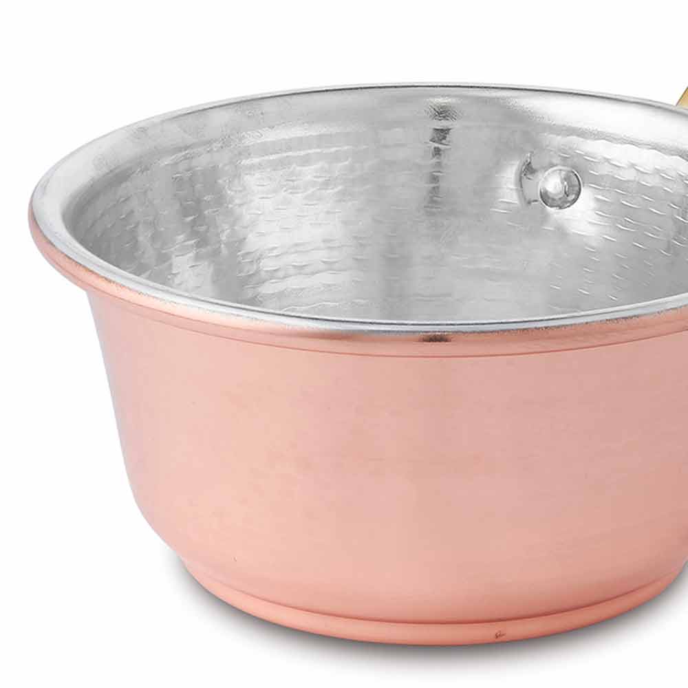 pande i hamret og fortinnet massiv kobber med messinghåndtag, udtrykker den absolutte mestring af håndværk i henhold til den