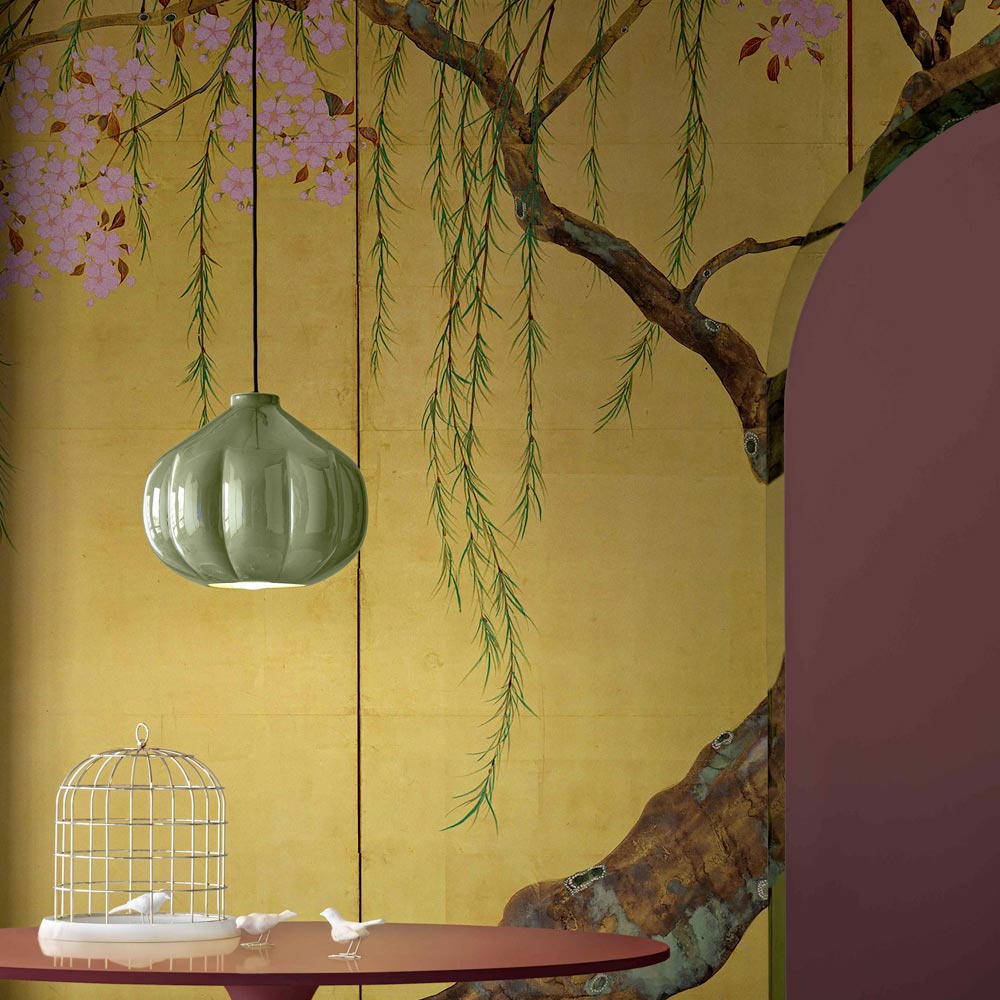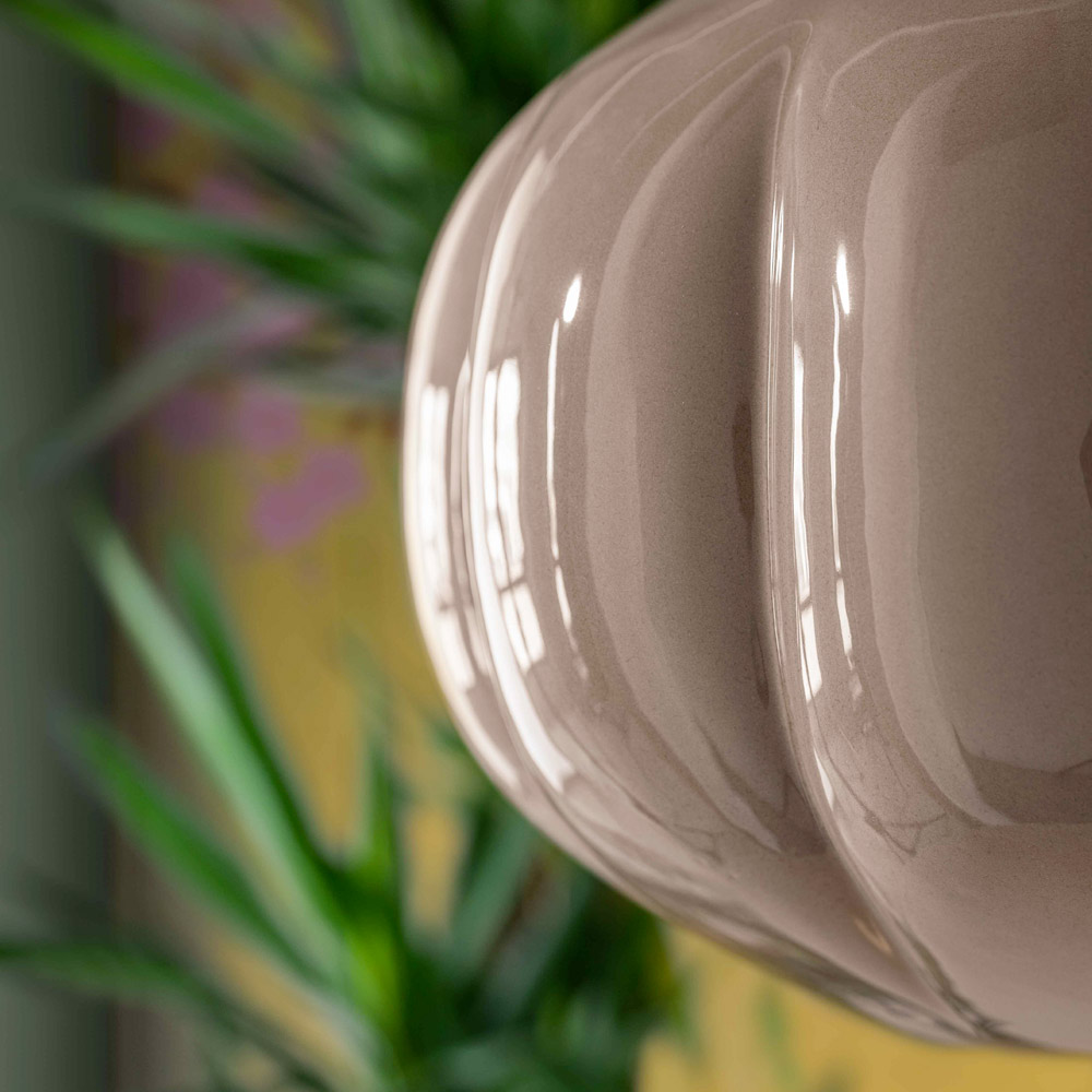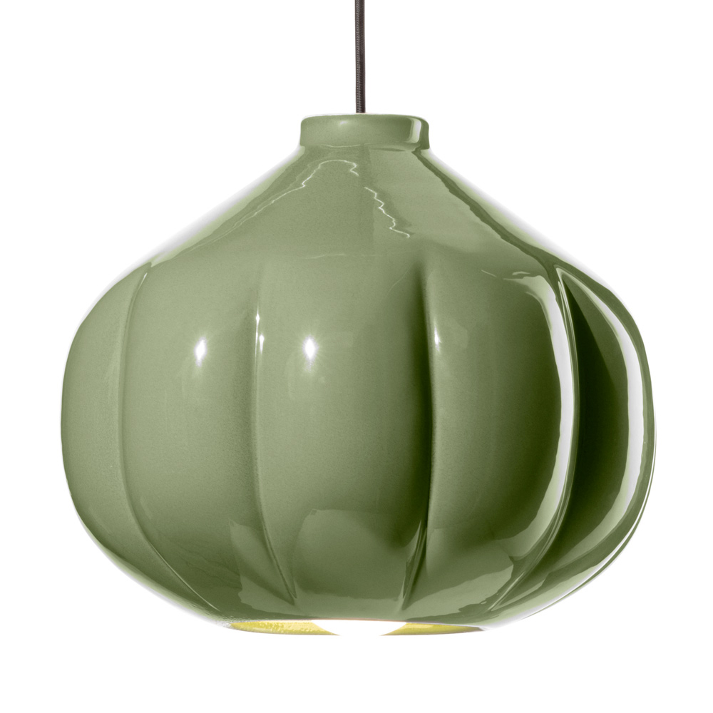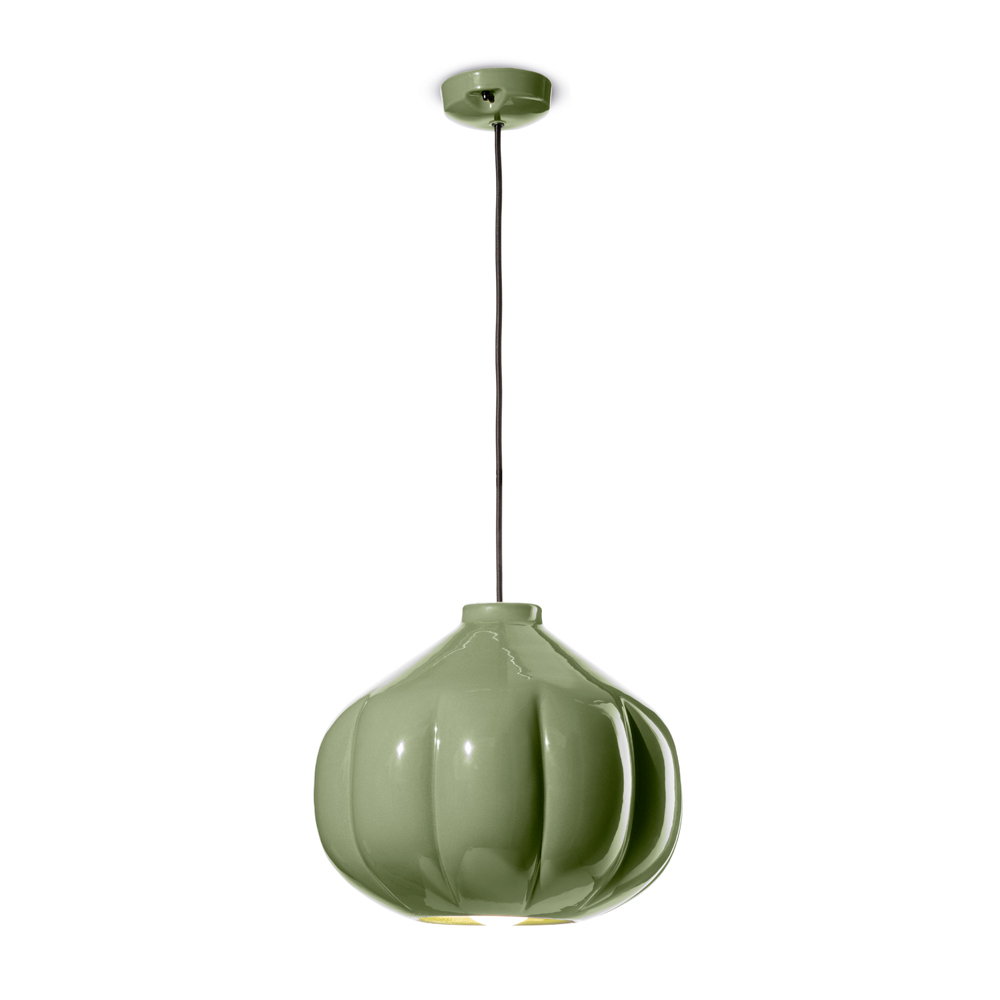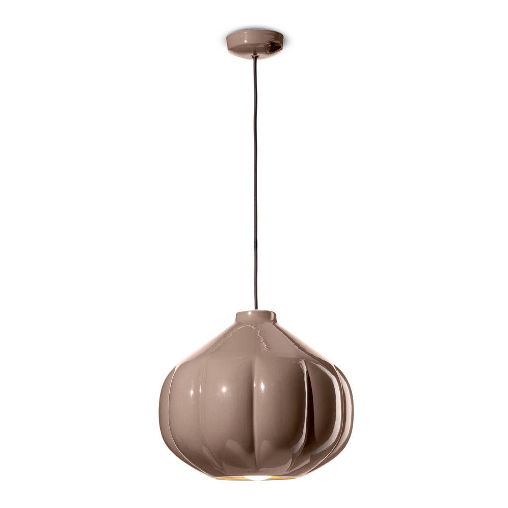 Denne pendel er et mesterværk af moderne design , der taler sproget af hvisket elegance. Dens keramiske krop fremkalder en følelse af komfort og diskret luksus. Formen, der minder om fint lukkede blomsterblade, er designet til ikke kun at fange øjet, men også for at skabe diffus og omsluttende belysning, der fremhæver hvert hjørne af rummet.