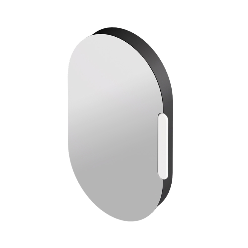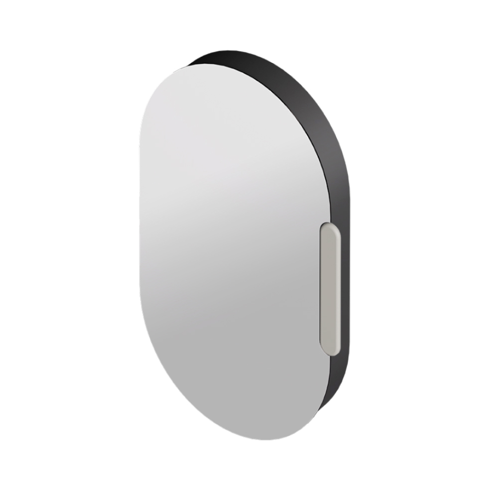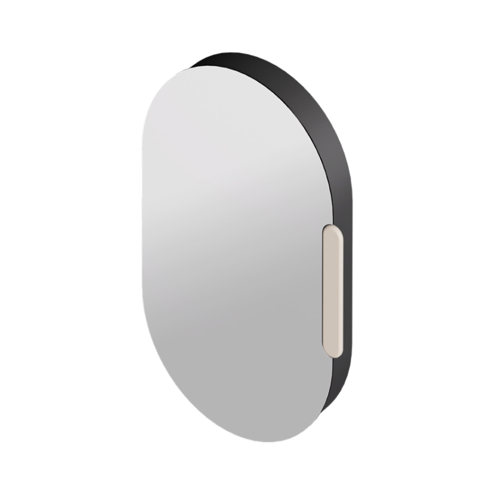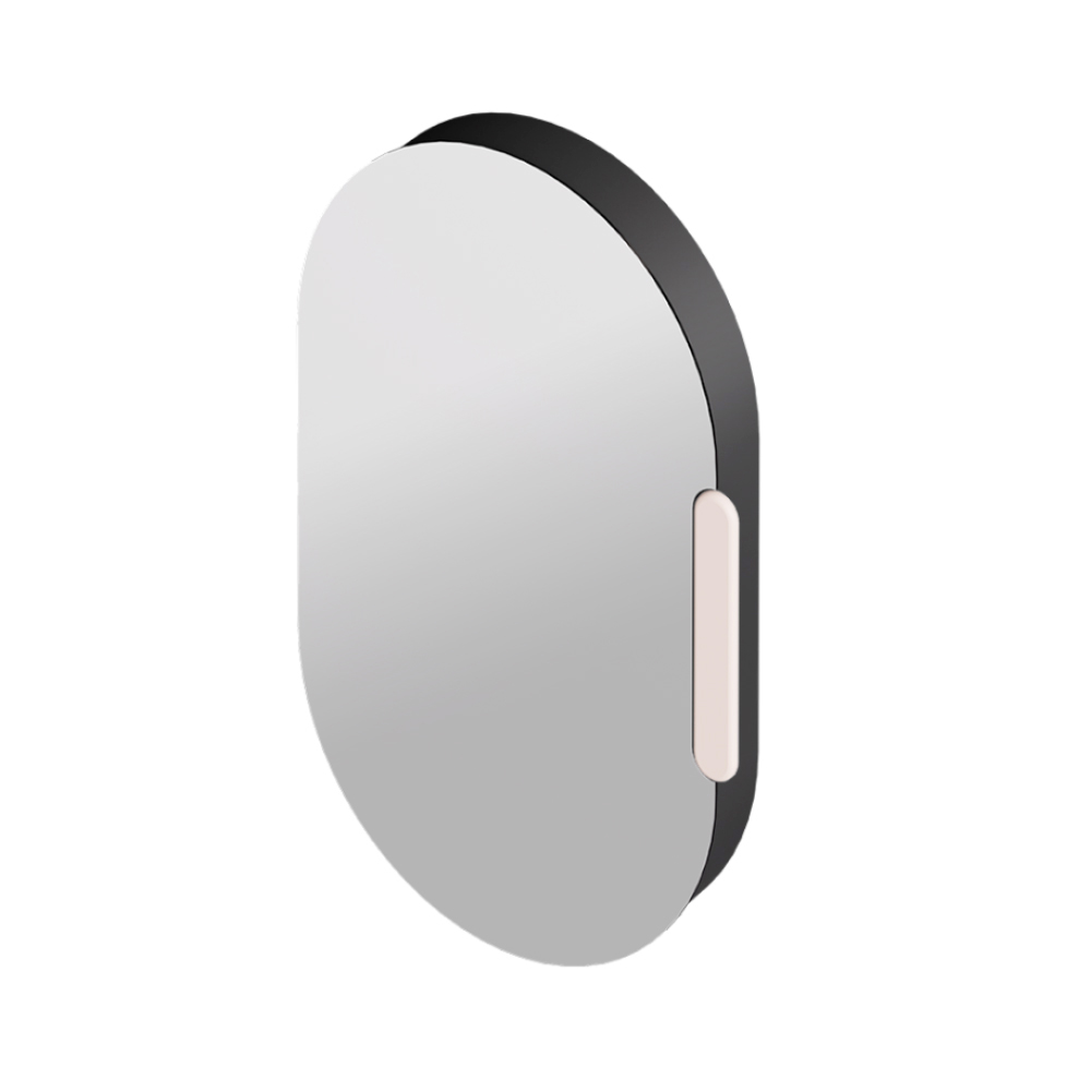 Dette ovale spejl med keramisk ramme er ikke kun et dekorativt element, men også en smart beholder : bag den reflekterende overflade er der praktiske åbne rum, der er ideelle til elegant organisering af små hverdagsgenstande.