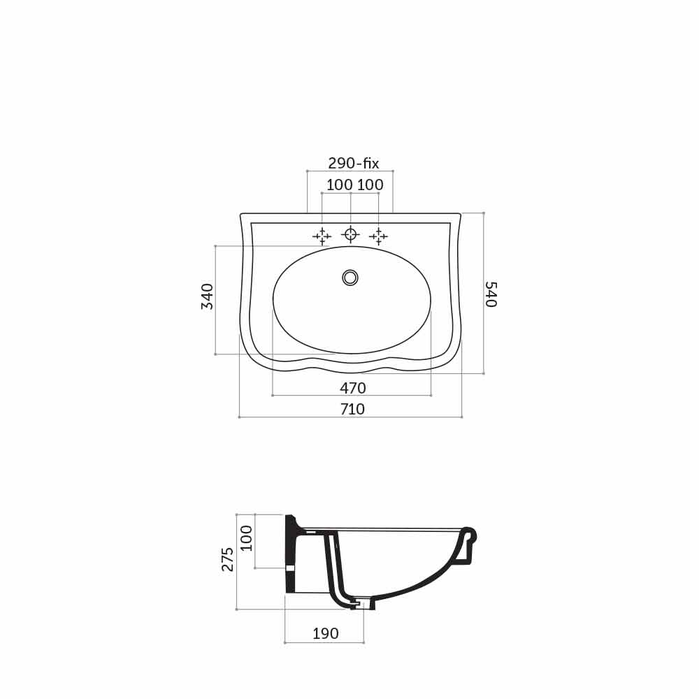 Avisen er udstyret med et centralt hul, og det fås i den vægmonterede version eller den med søjle . Det realiseres i glasagtig Kina , en slags glaseret keramik kogt ved 1200 ° . Det er et materiale, der er resistent over for syre, varme, stød og ridser . Det er hygiejnisk , let at rengøre, og det falmer ikke med tiden.