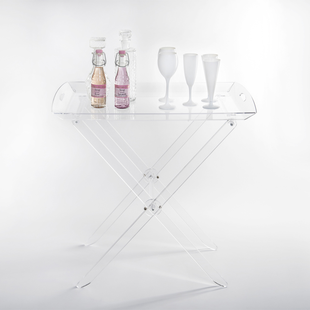 Klapbord med bakkehylde i akrylkrystal, 2 størrelser fremstillet i Italien.