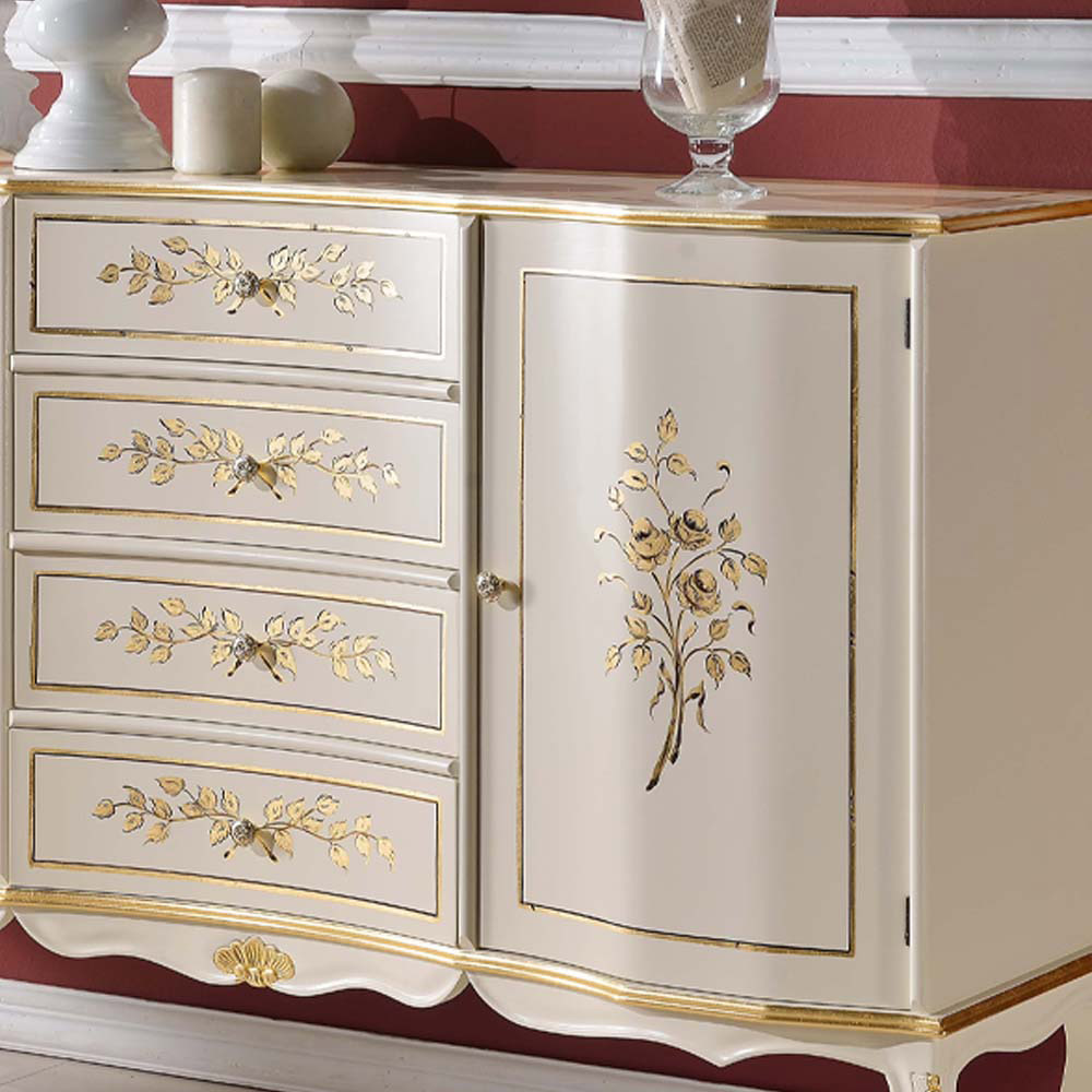 Klassisk 2-dørs og 4-skuffers træskænk Fremstillet i Italien.