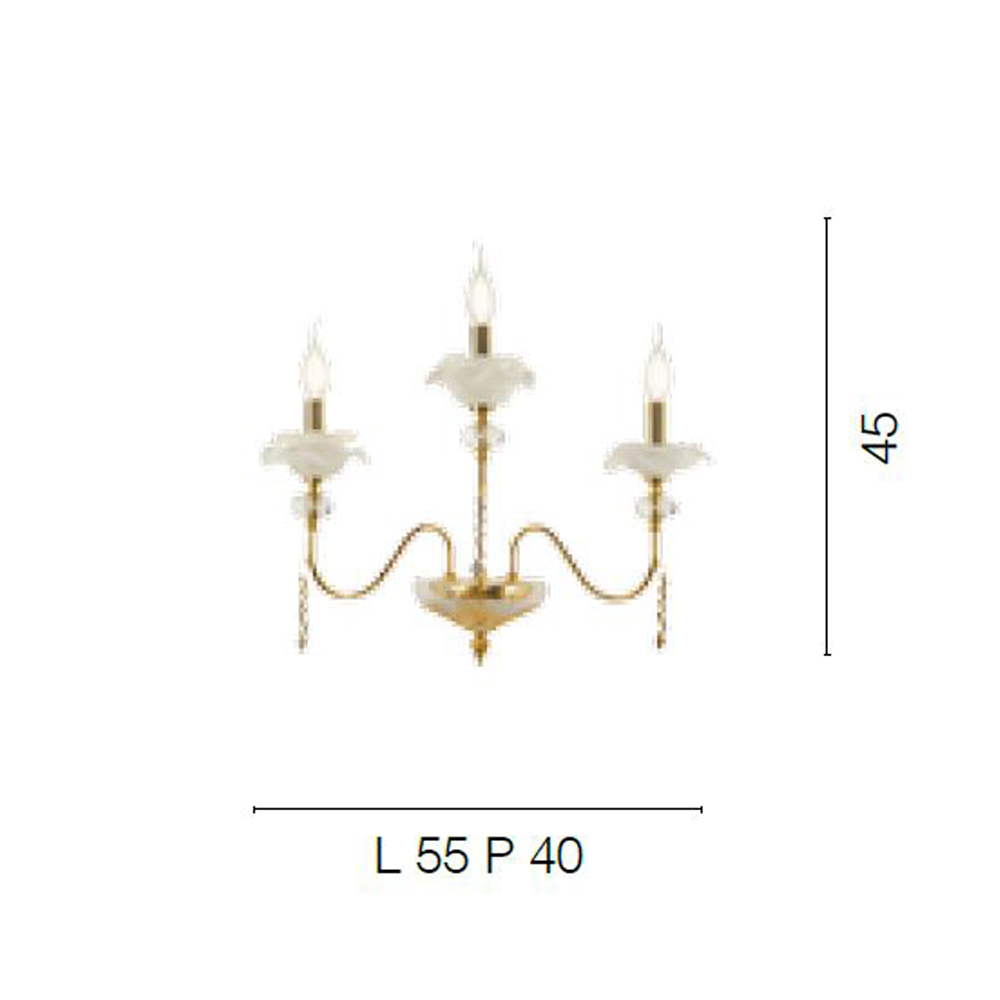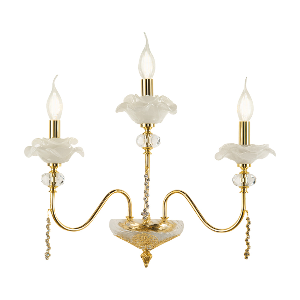 3 lys væglampe i håndlavet glas med knopper og krystaldråber, luksus lavet i Italien.