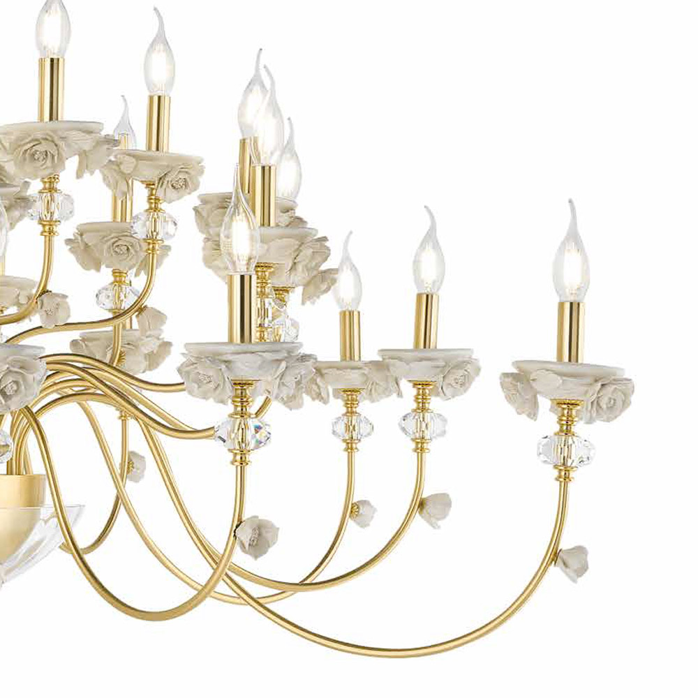 30 lys lysekrone i porcelæn og blæst glas, luksus lavet i Italien.