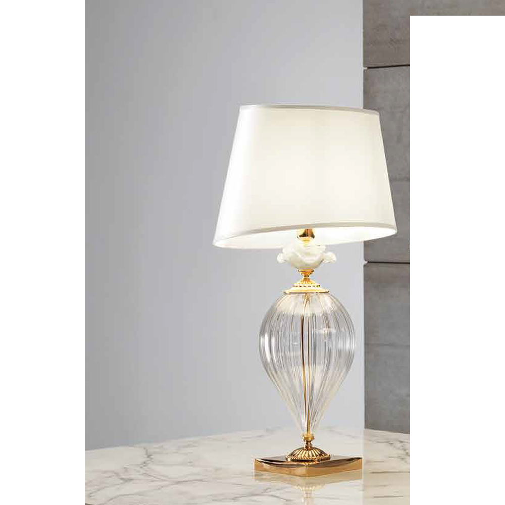 Bordlampe i håndlavet glas med krystaldekoration, luksus lavet i Italien.