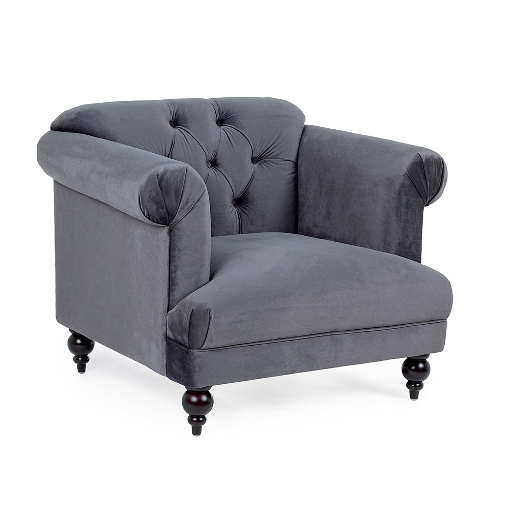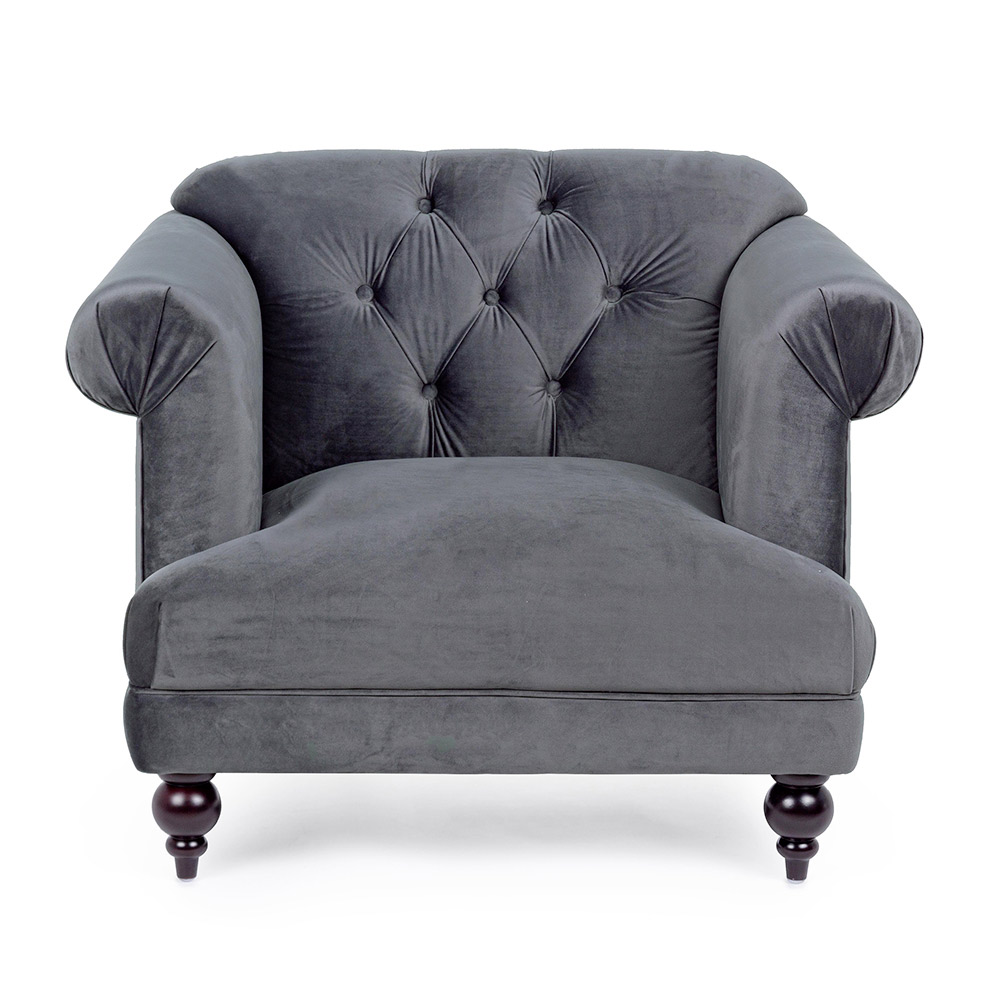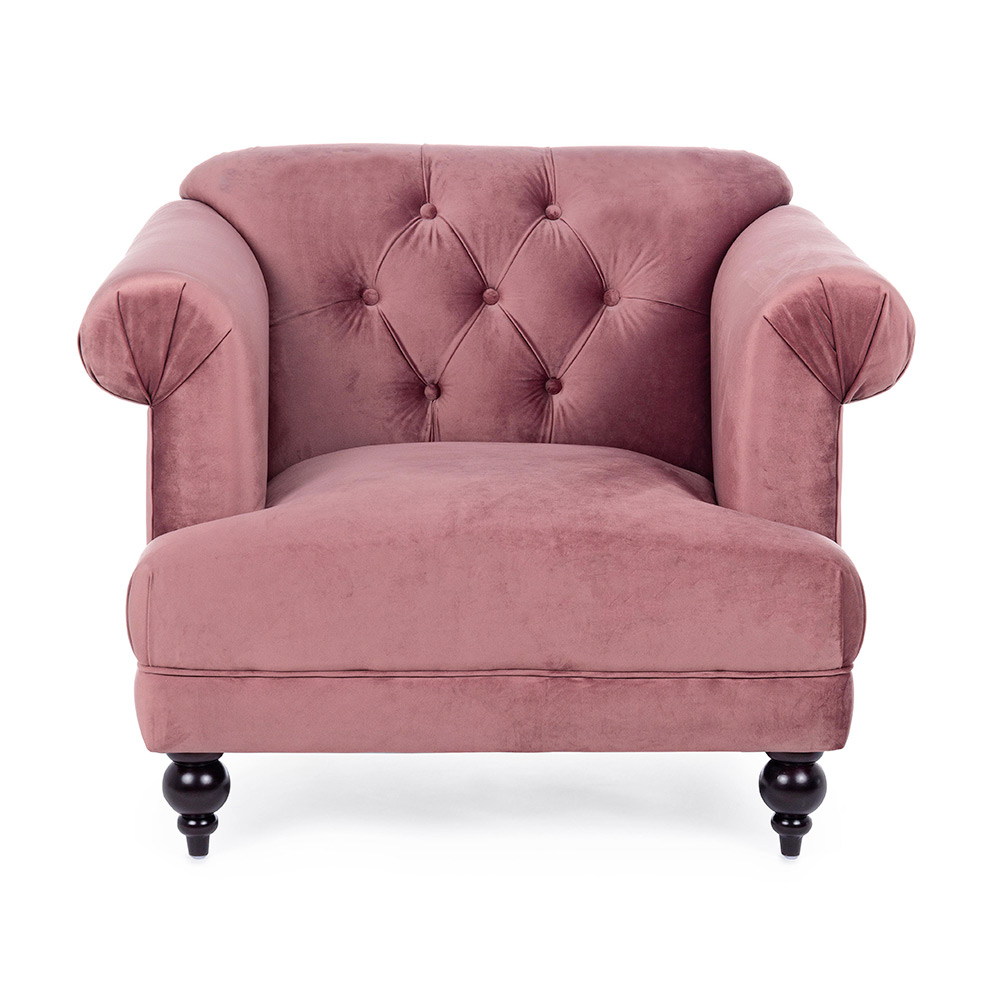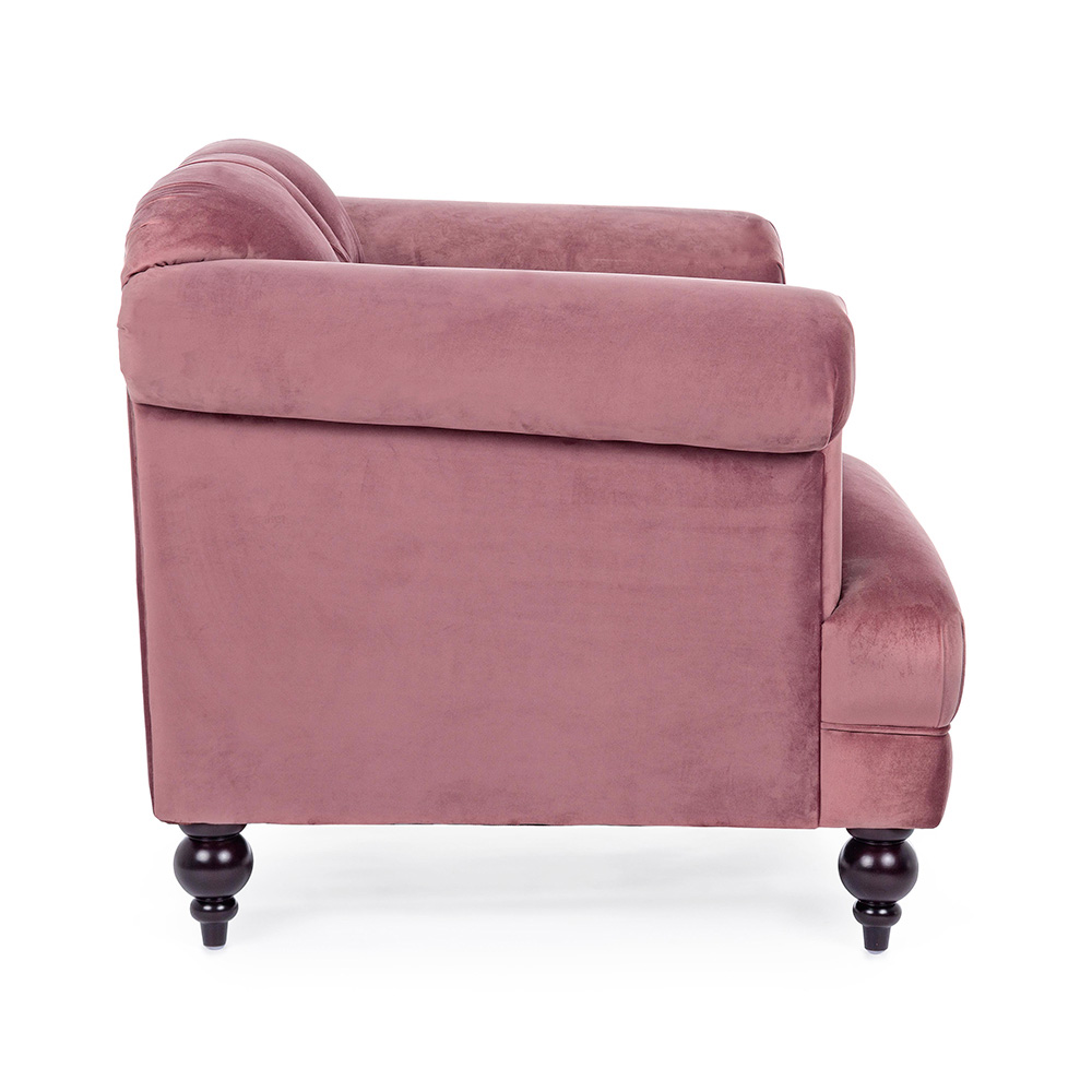 Klassisk design lænestol i træ og grå eller pink fløjlseffekt - Sanny