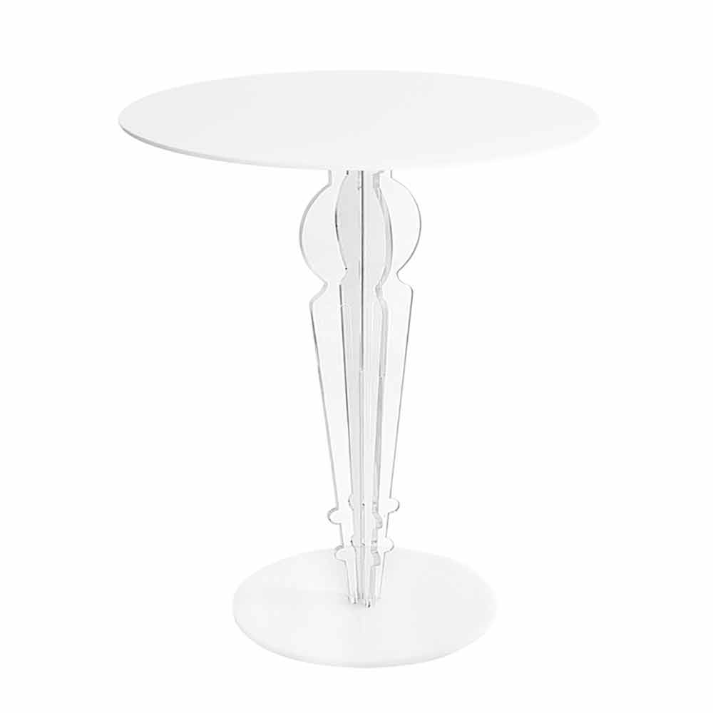 CLES-lillebordet er beregnet til at være en genfortolkning af de luksuriøse små borde i det XVIII århundrede med et eneste centralt ben. Den er lavet med en meget ren PMMA akryl krystal, med gennemsigtigt ben og overflade i fuldhvid farve.