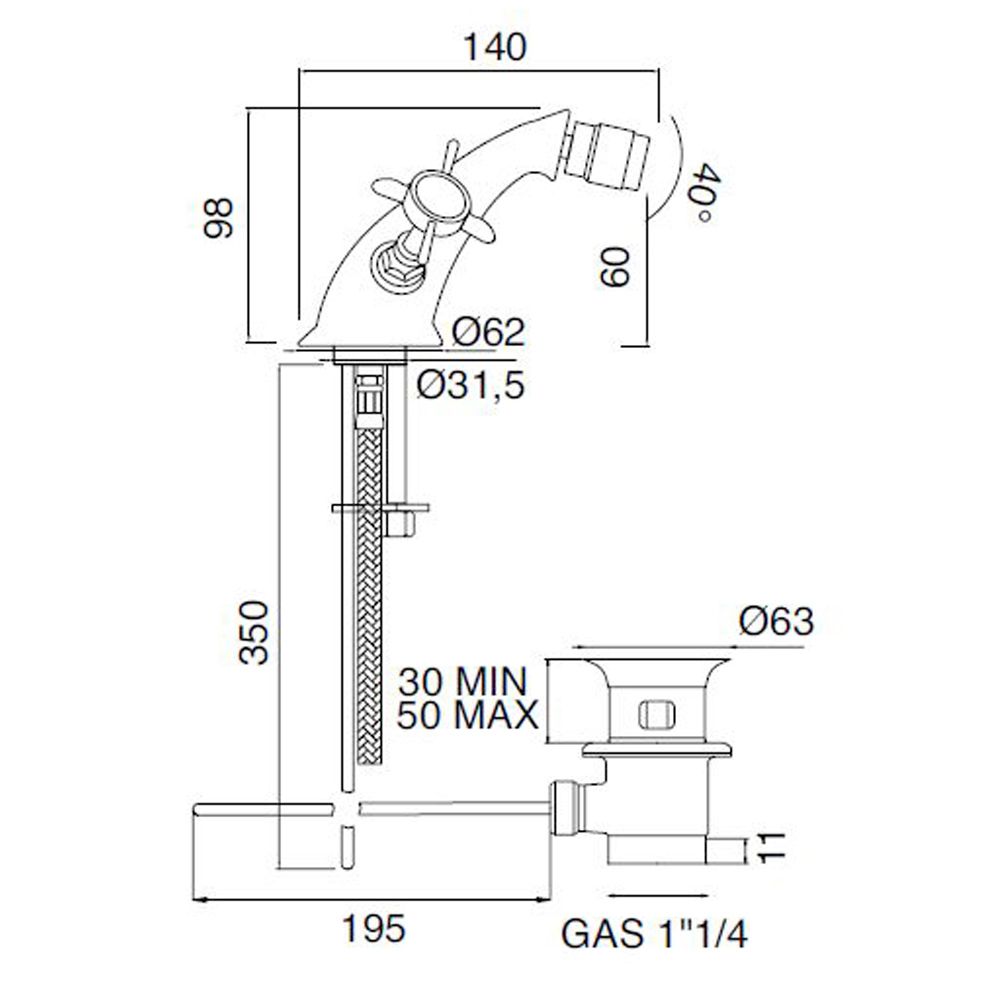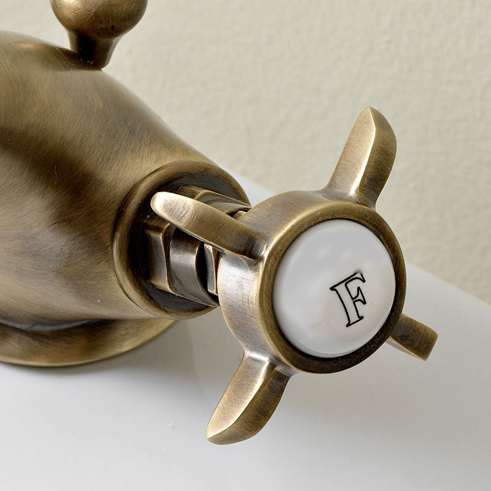 En-huls bidetarmatur i håndlavet messing i klassisk stil fremstillet i Italien.