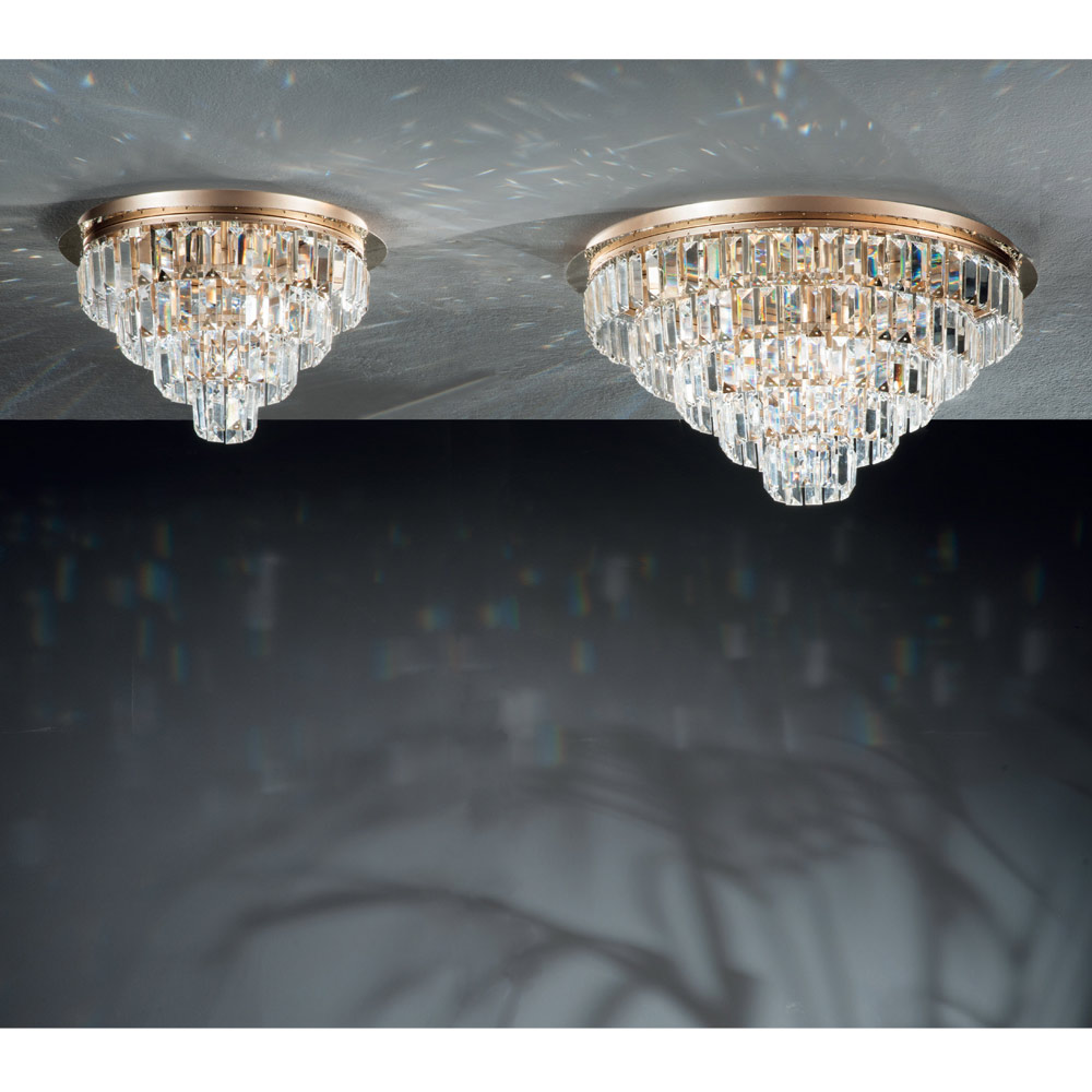 Fås i to størrelser, den har en gylden metalstruktur, og det stærke punkt er givet af krystalvedhængene , der dekorerer , oplyser ethvert miljø med smag og karakter, i en blanding af stil, klasse og innovation.