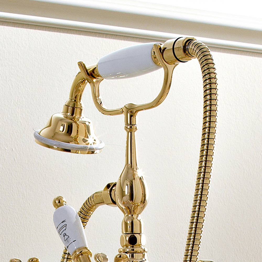 Håndlavet klassisk gulvbadekar i messing med håndbruser, høj kvalitet fremstillet i Italien.