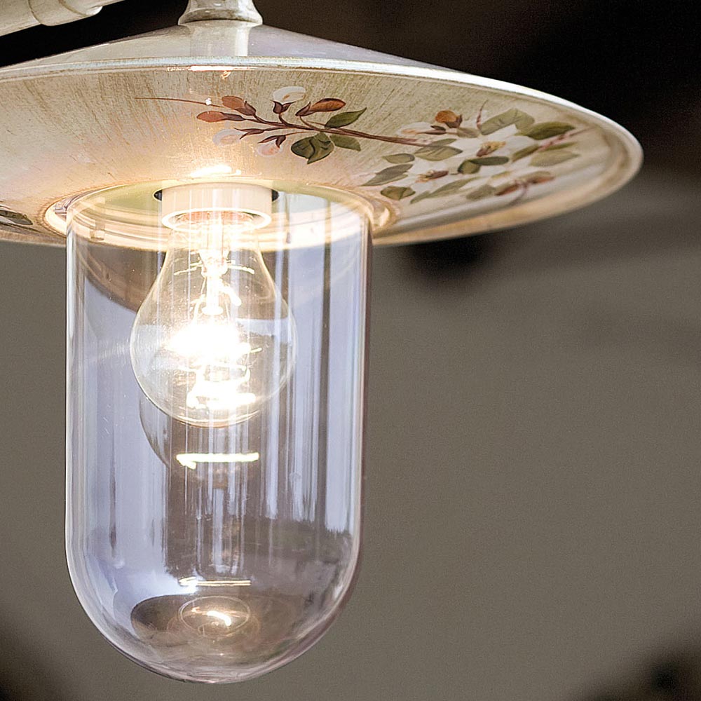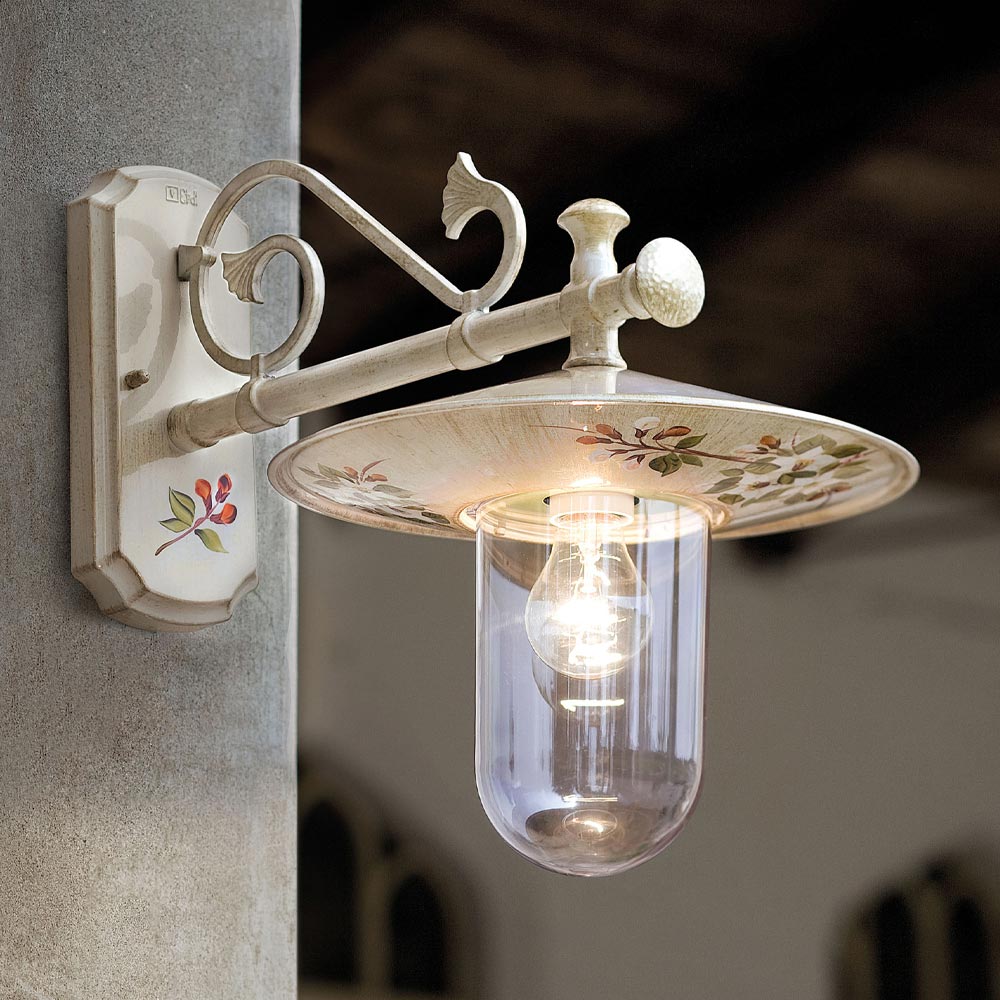Denne havevæglampe er udelukkende lavet af aluminium med en håndmalet blomsterdekoration for en klassisk og harmonisk stil mellem form og farver.