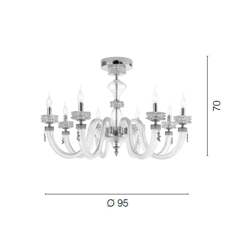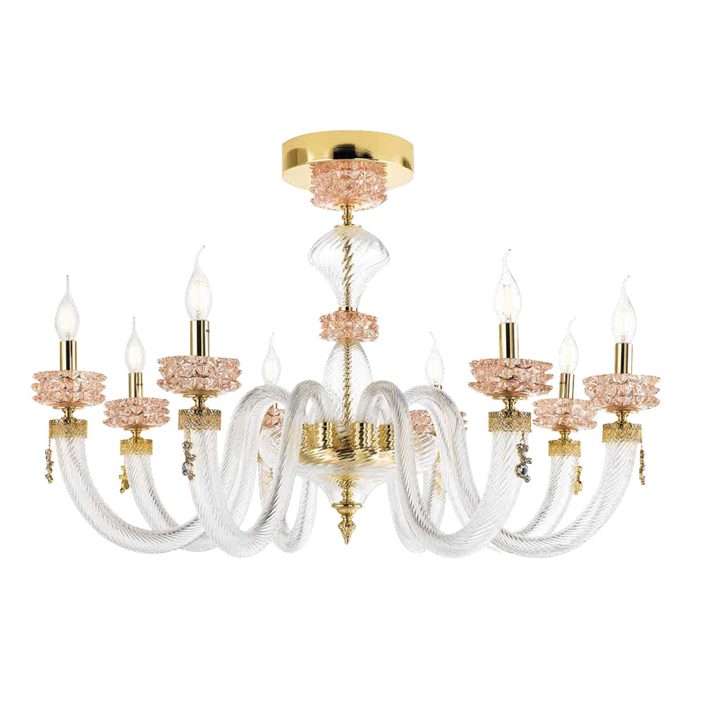 8 lys loftslampe i håndlavet glas og metal, italiensk luksusdesign.