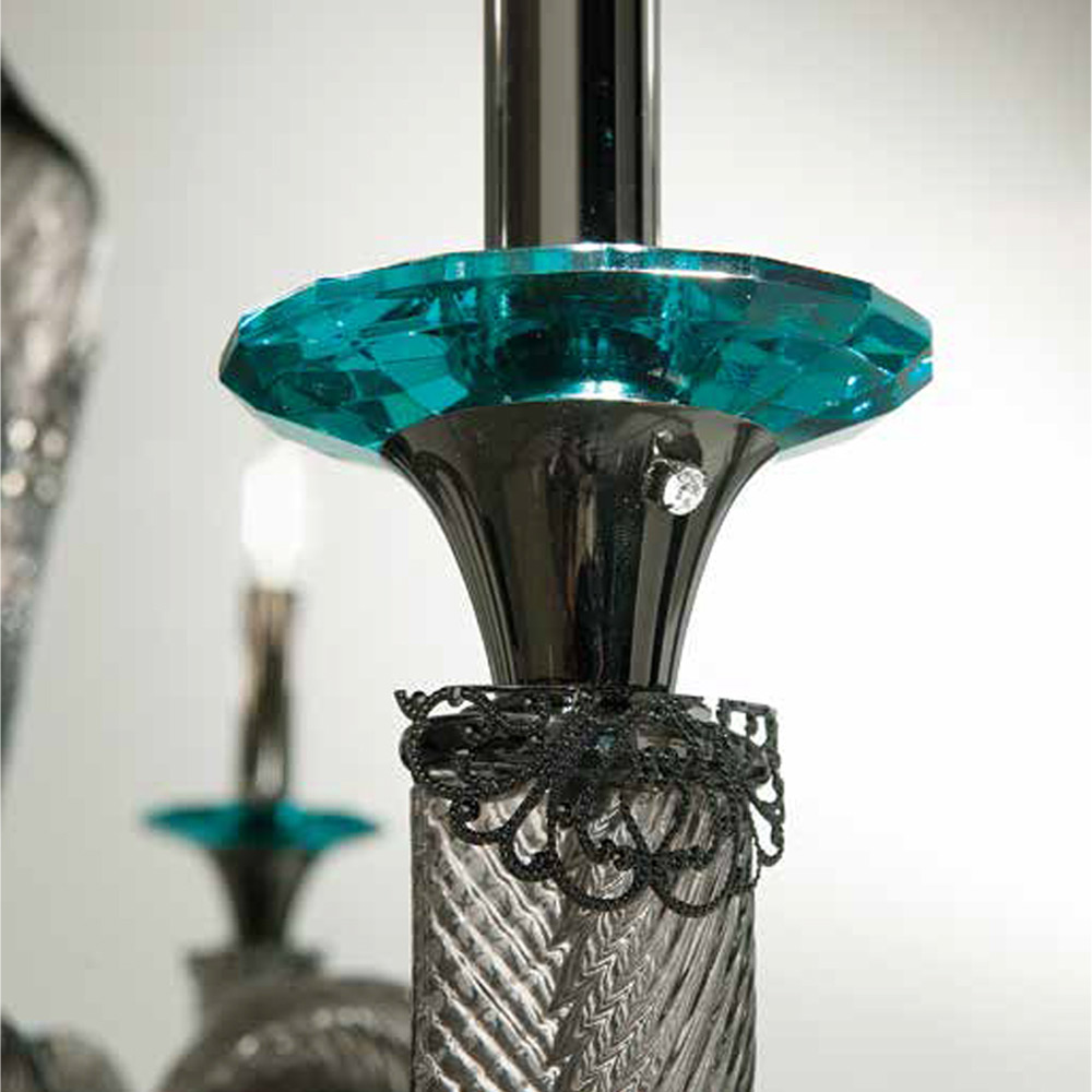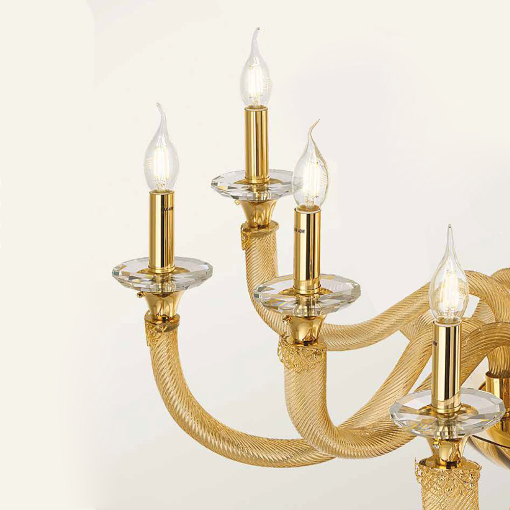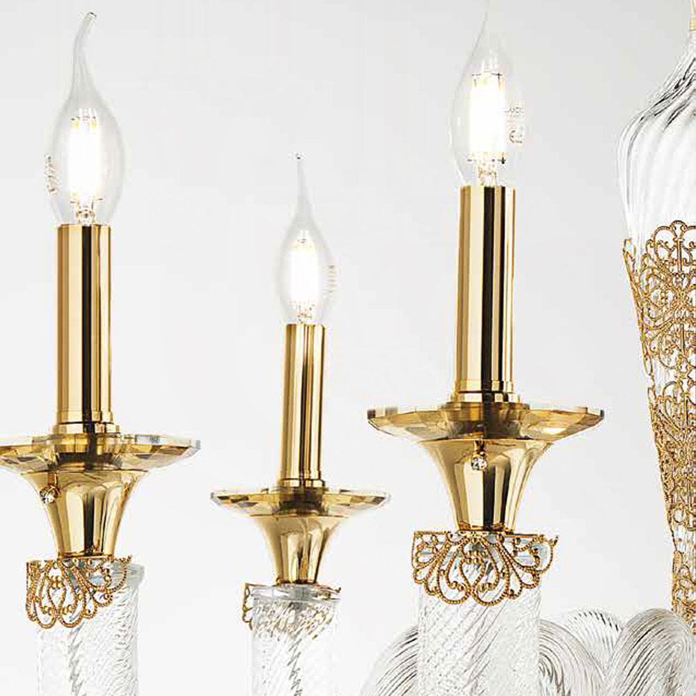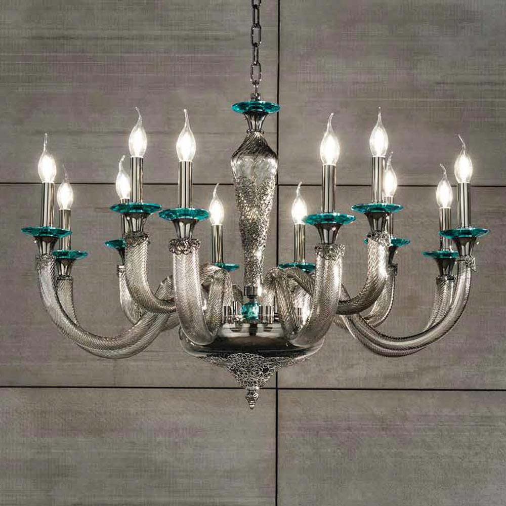 12 lys lysekrone i håndlavet glas og krystaller, italiensk luksus.