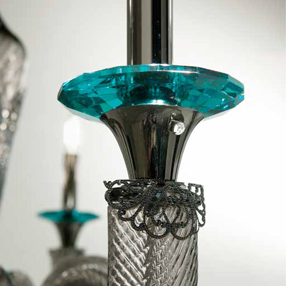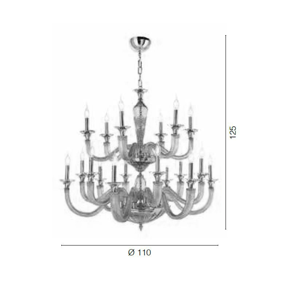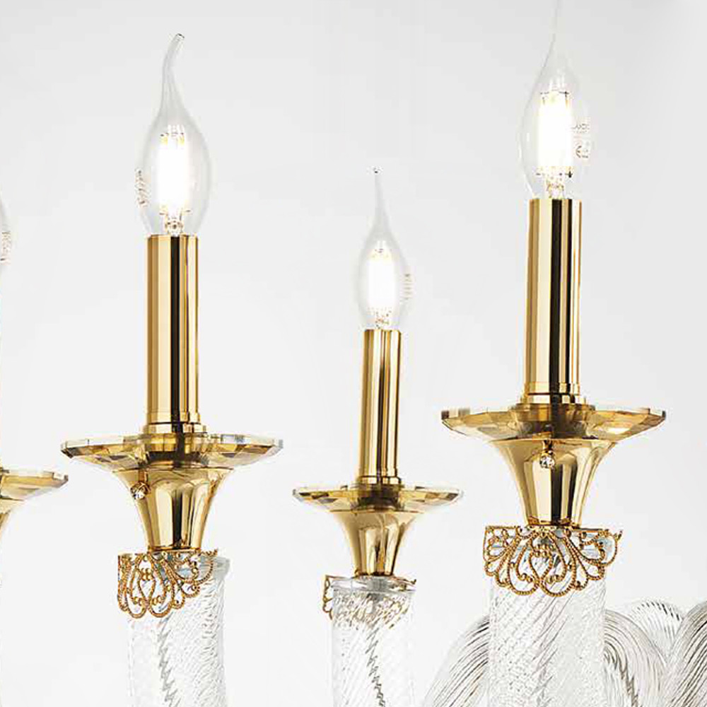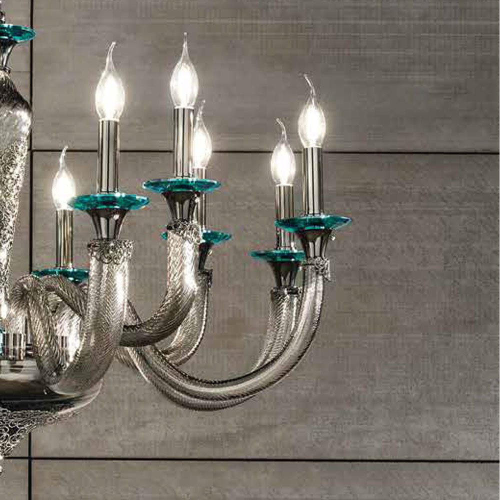 18 lys lysekrone i håndlavet glas og krystaller, italiensk luksus.