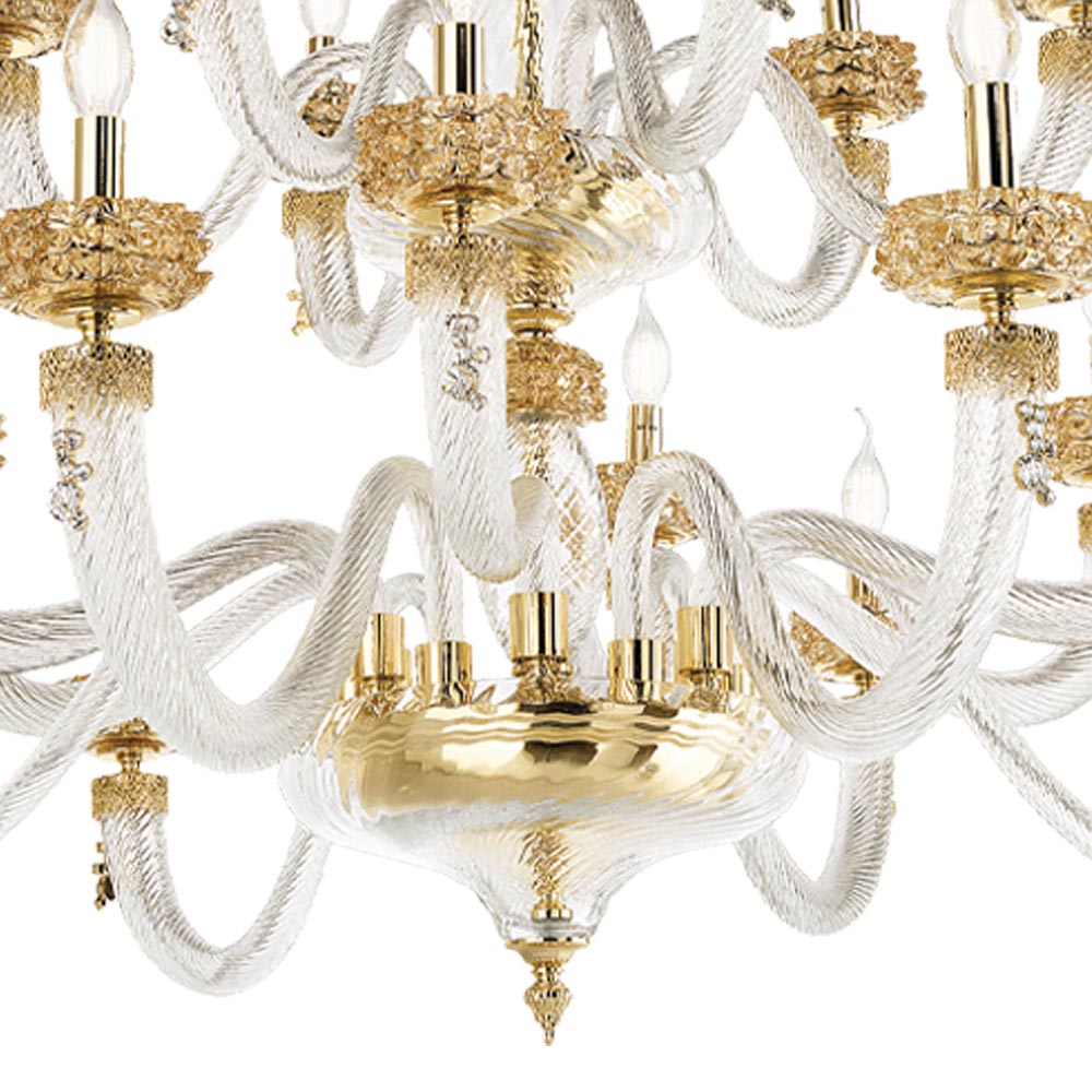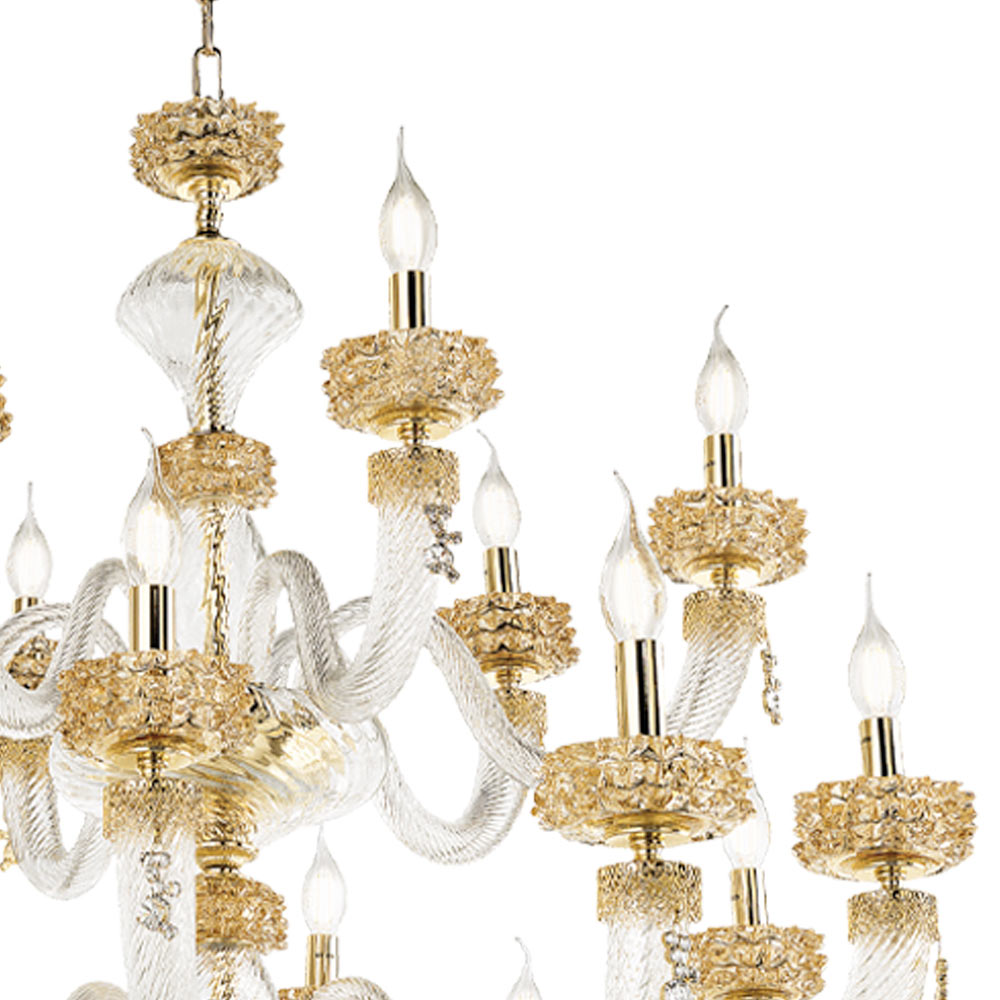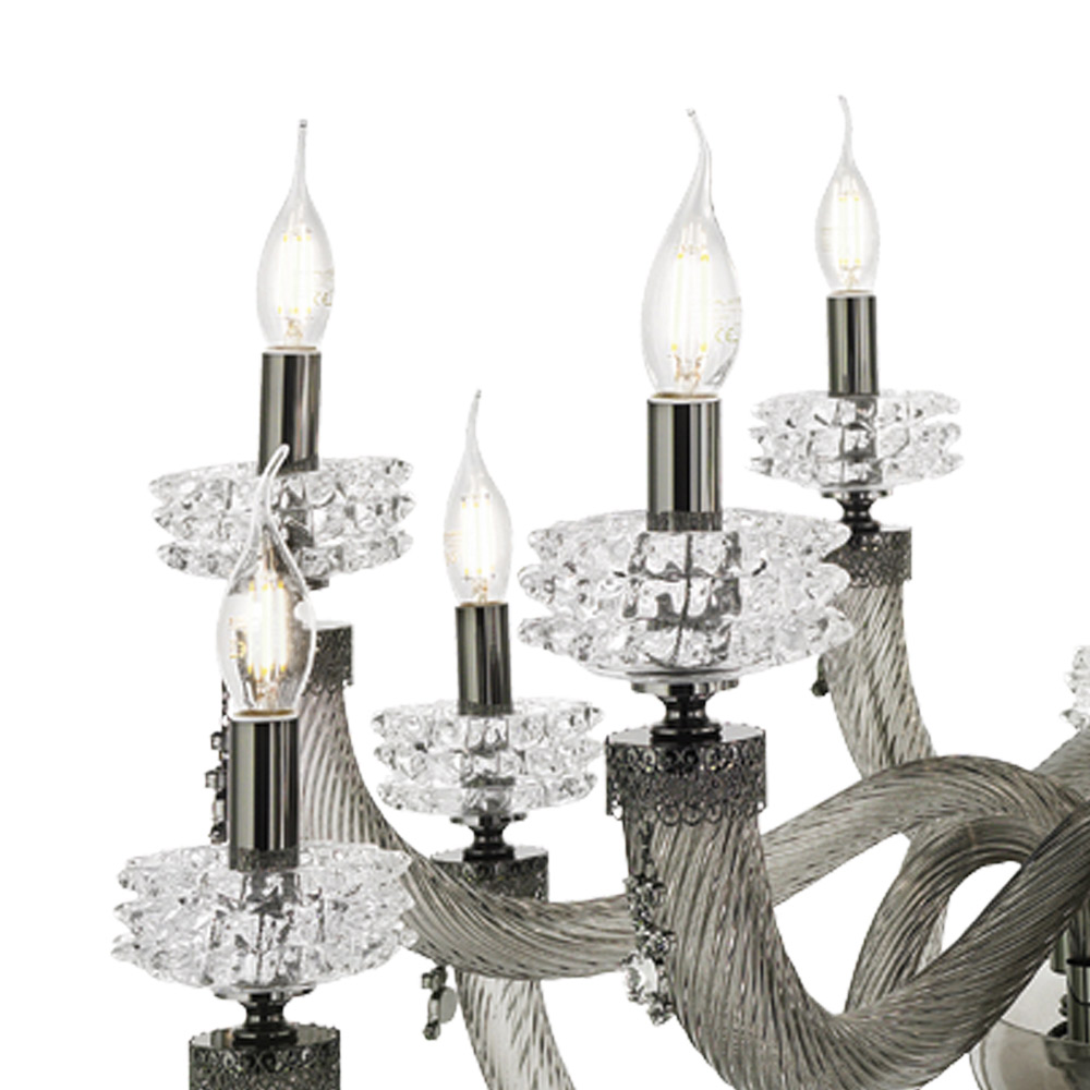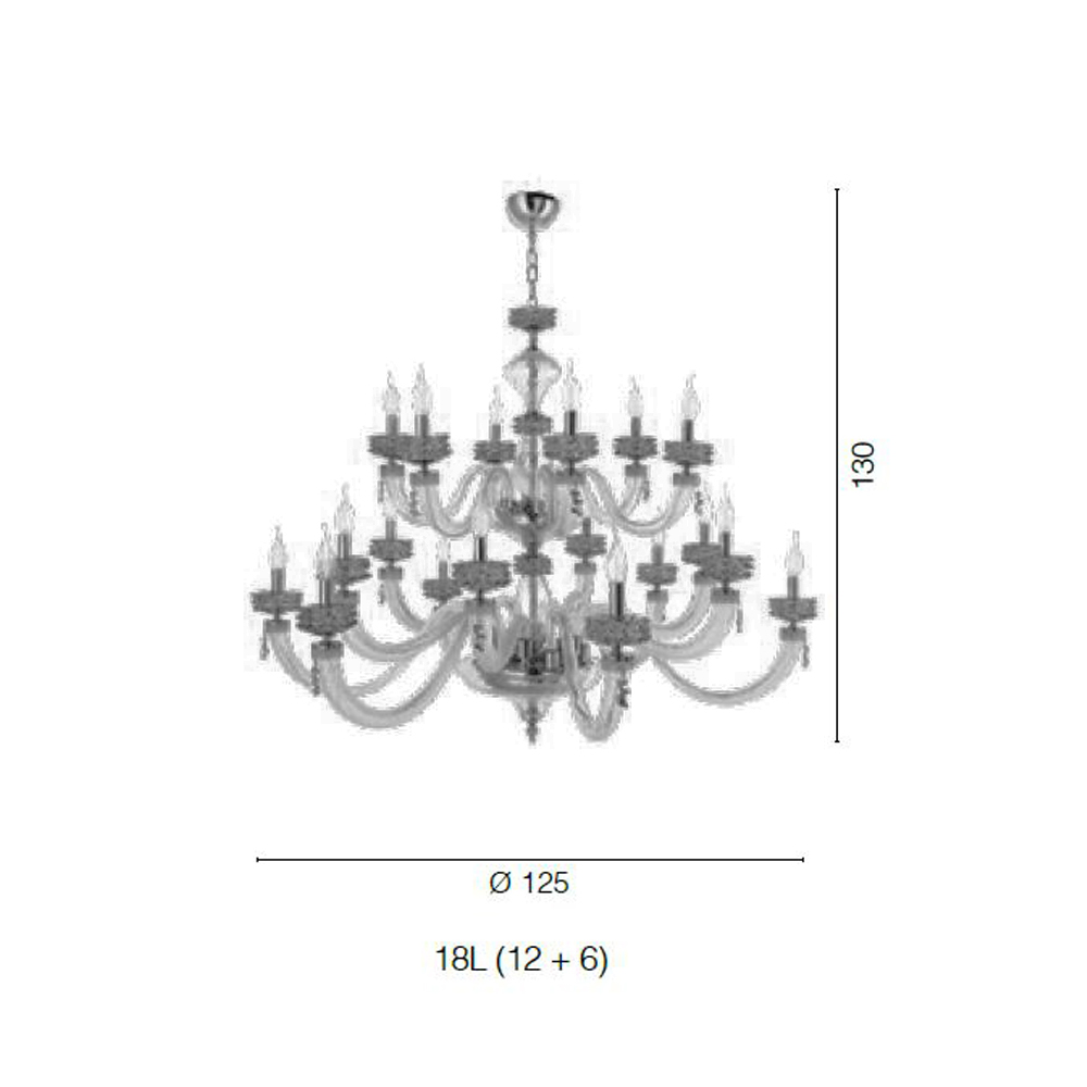 18 lys lysekrone i håndlavet glas og metal, italiensk luksusdesign.