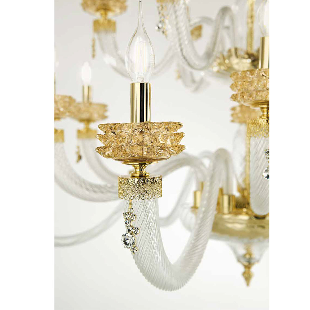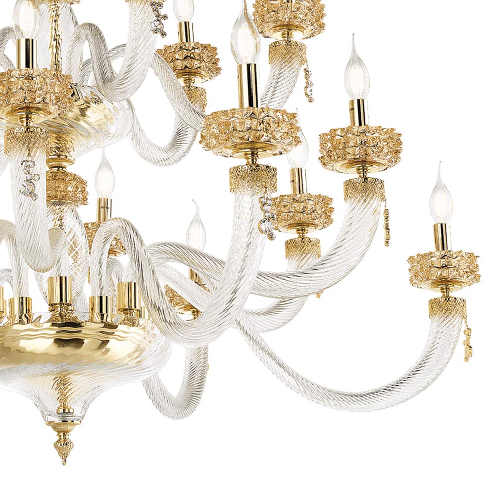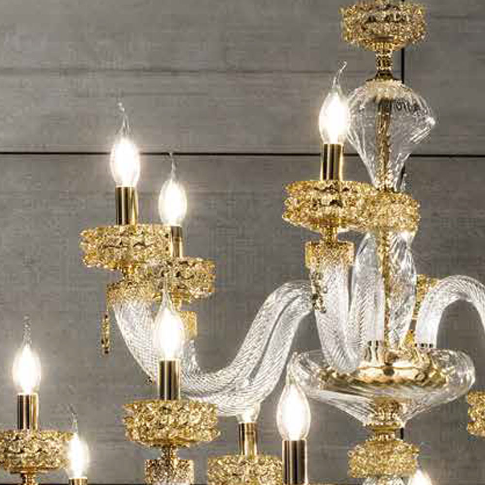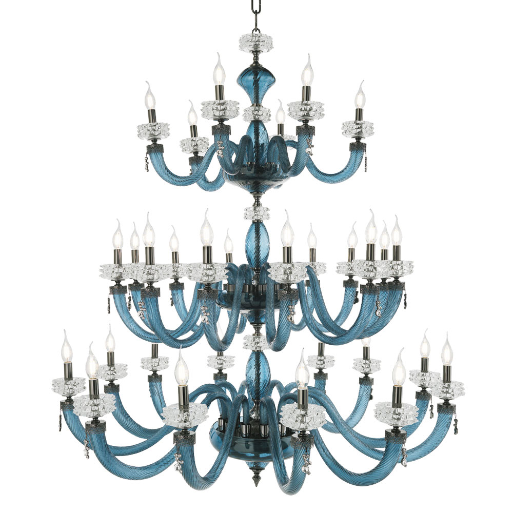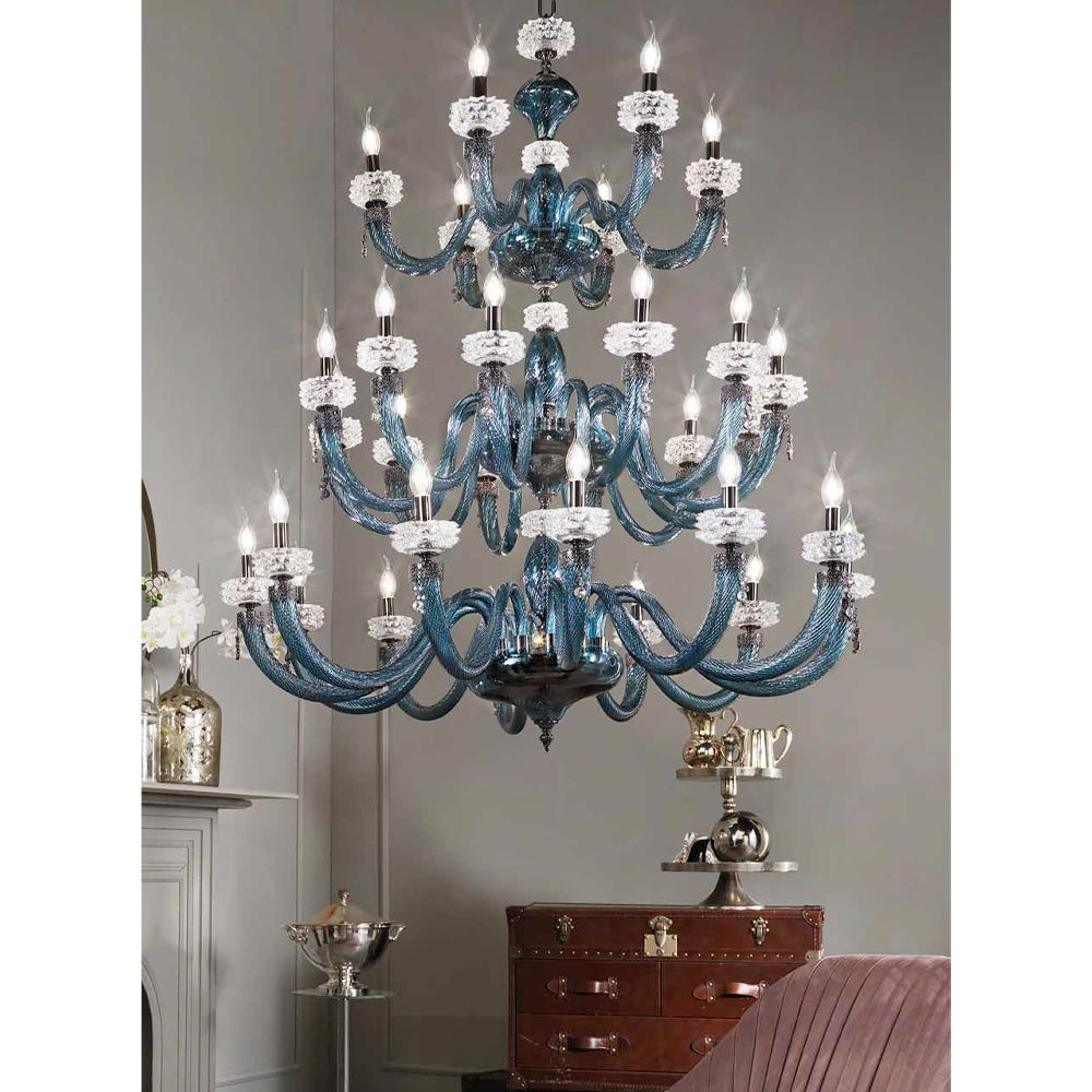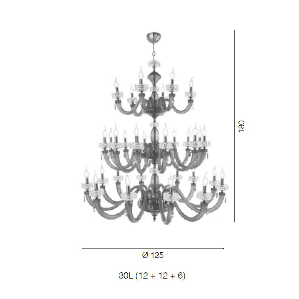 30 lys lysekrone i håndlavet glas og metal, italiensk luksusdesign.