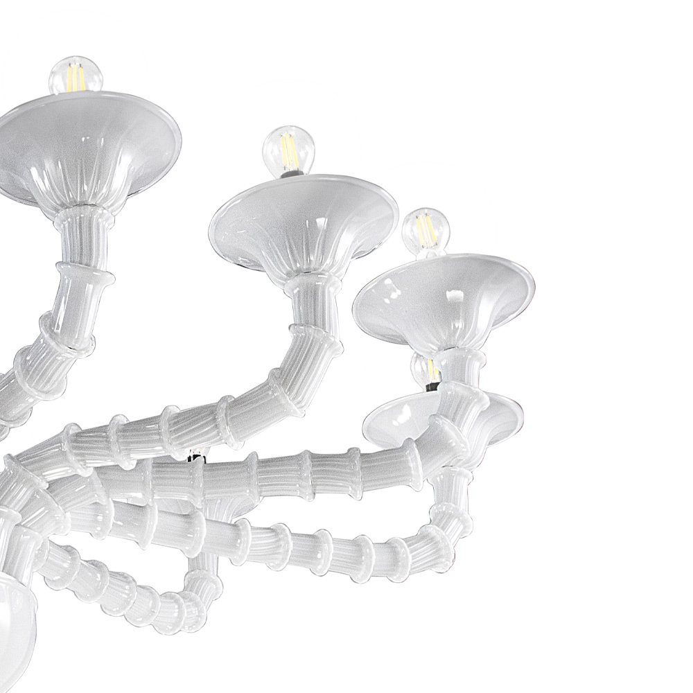 Håndblæst hvid venetiansk glas 12 lys lysekrone, klassisk stil.