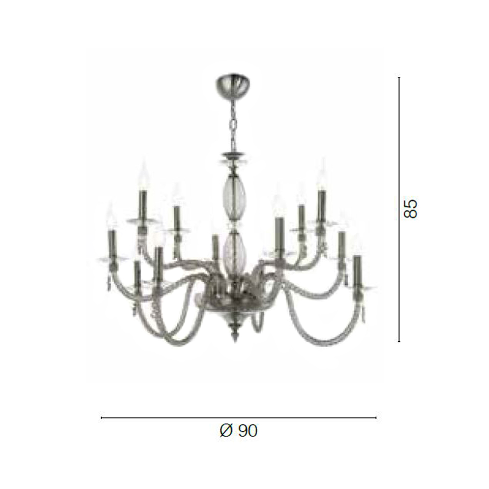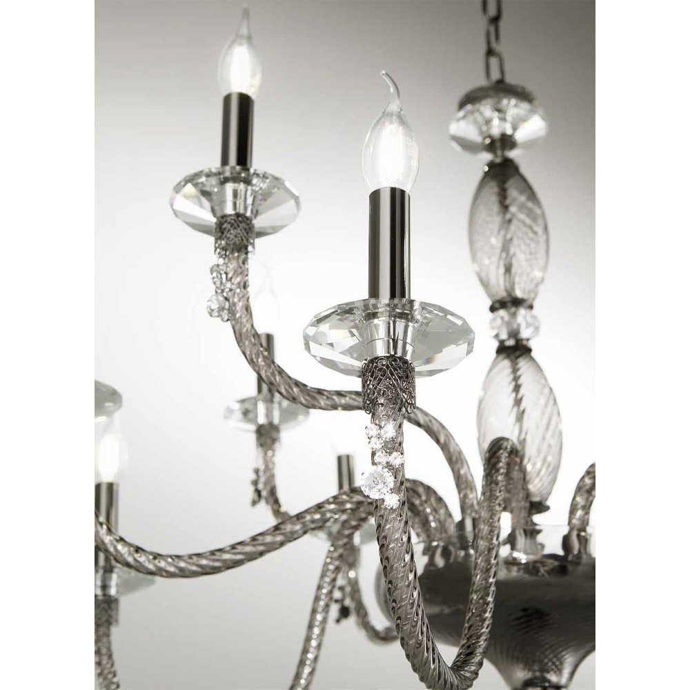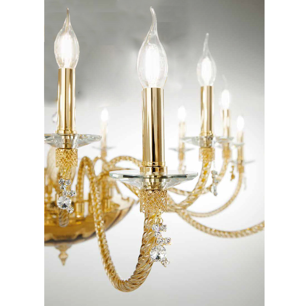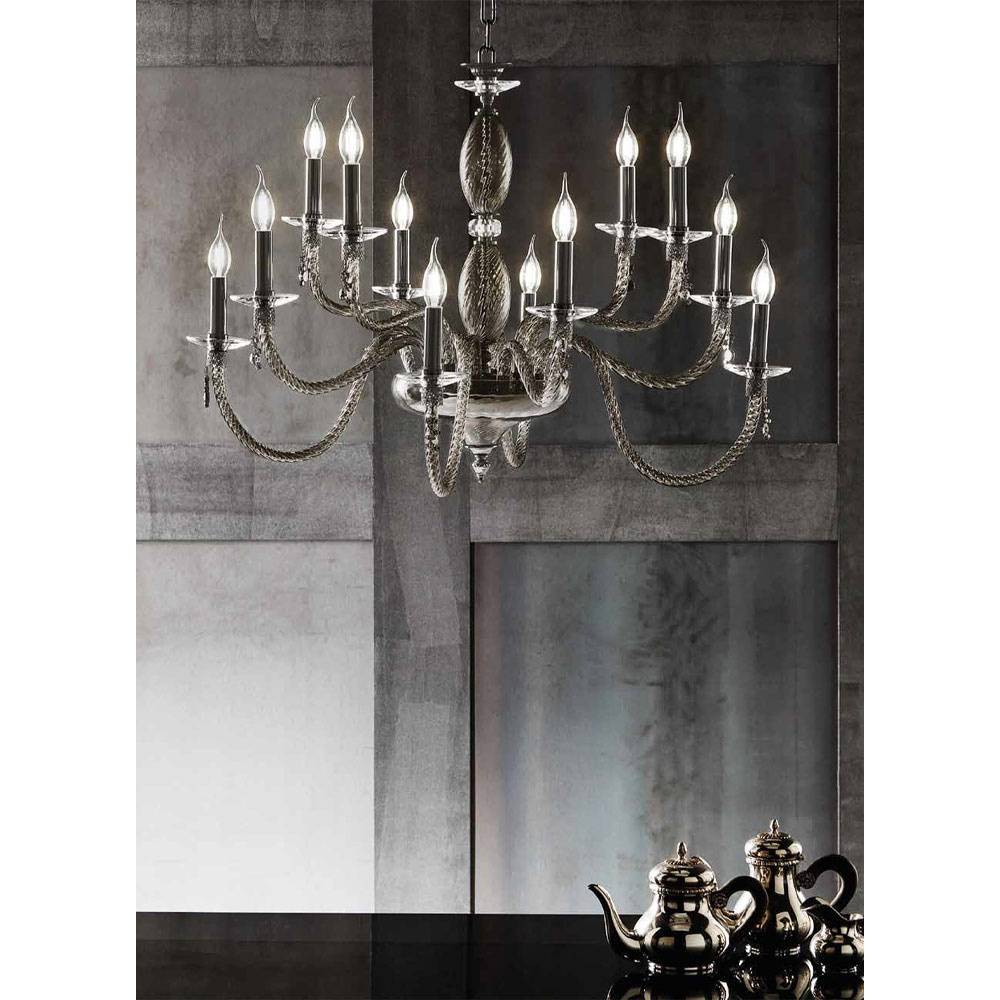 12 lys lysekrone i blæst glas og juveldetaljer, italiensk luksus.