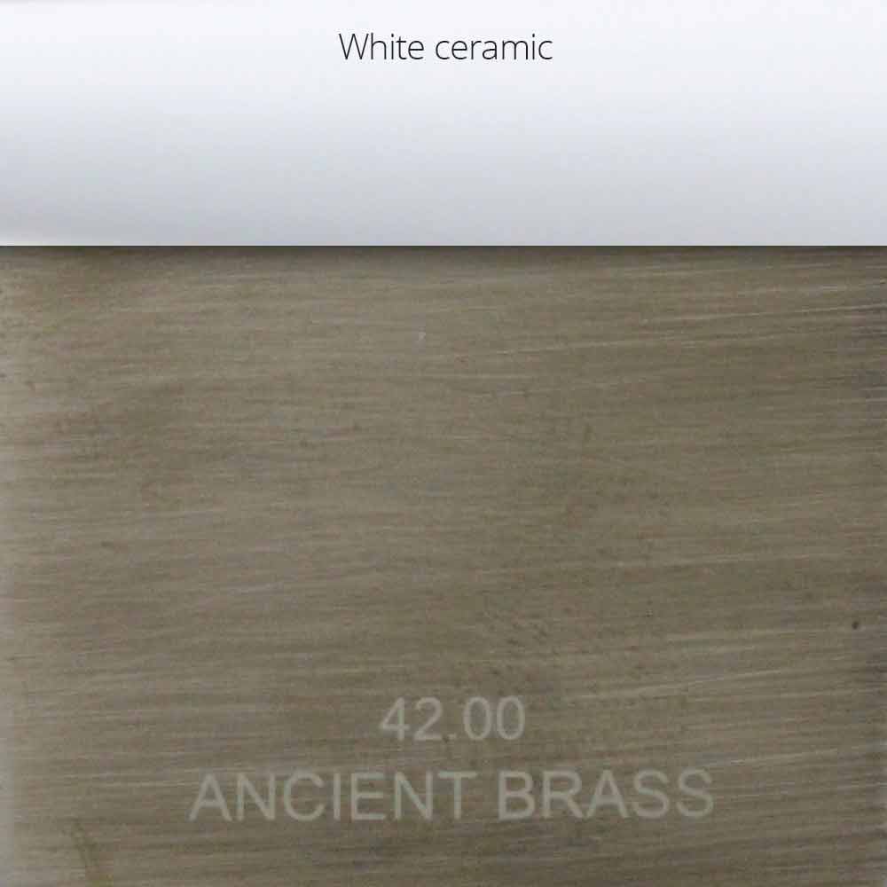 - Ancient Messing: matbørstet antik messingfinish med hvide keramiske indsatser på håndtagene;