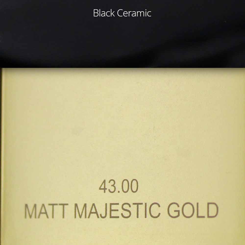 - Matt Majestic Gold: matt 13 guldfinish med sorte keramiske indsatser på håndtagene;