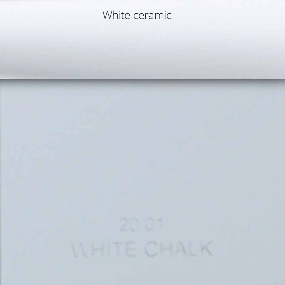 - Hvidt kridt: mat hvid finish med hvide keramiske indsatser på håndtagene;