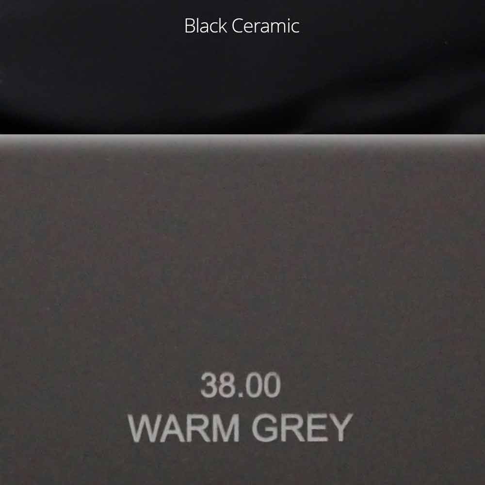 - Varm grå: mat varm mørkegrå finish med sorte keramiske indsatser på håndtagene;