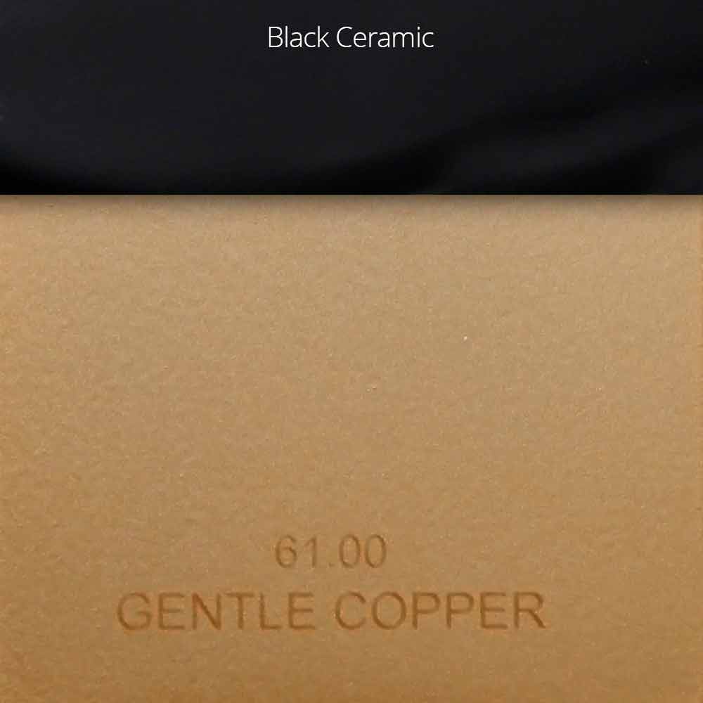 - Blid kobber: mat let kobbermetal finish med sorte keramiske indsatser på håndtagene;