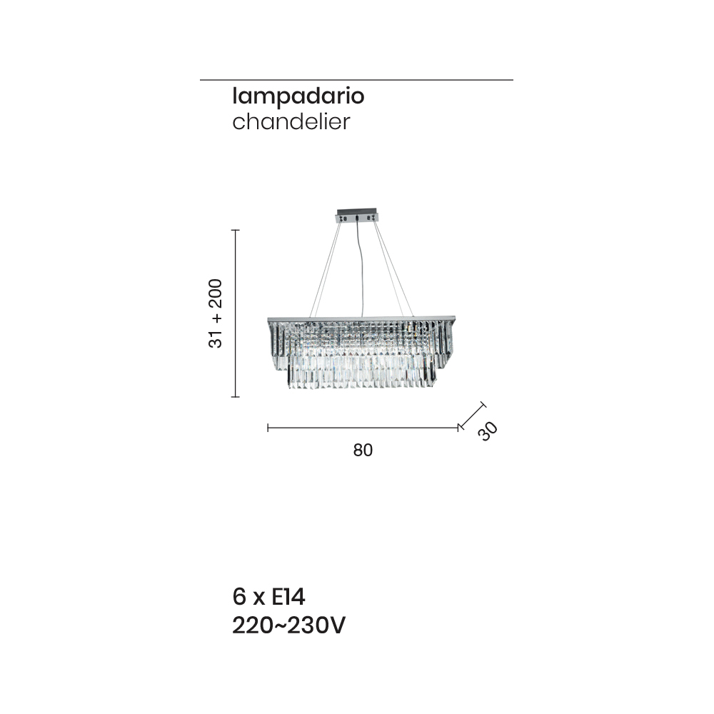 | Stik og strømtype | 6 eller 8 x E14 220-230V |