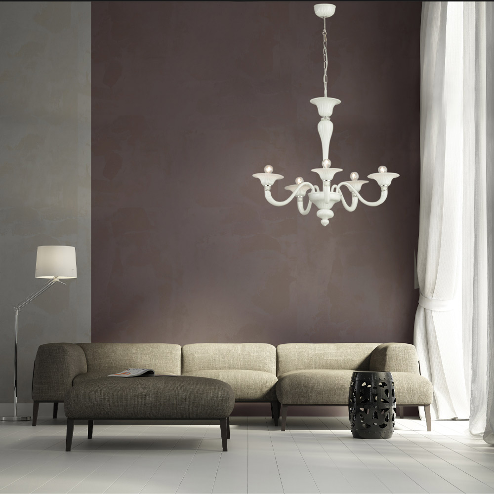 Klassisk håndblæst hvid Venedig glas lysekrone.