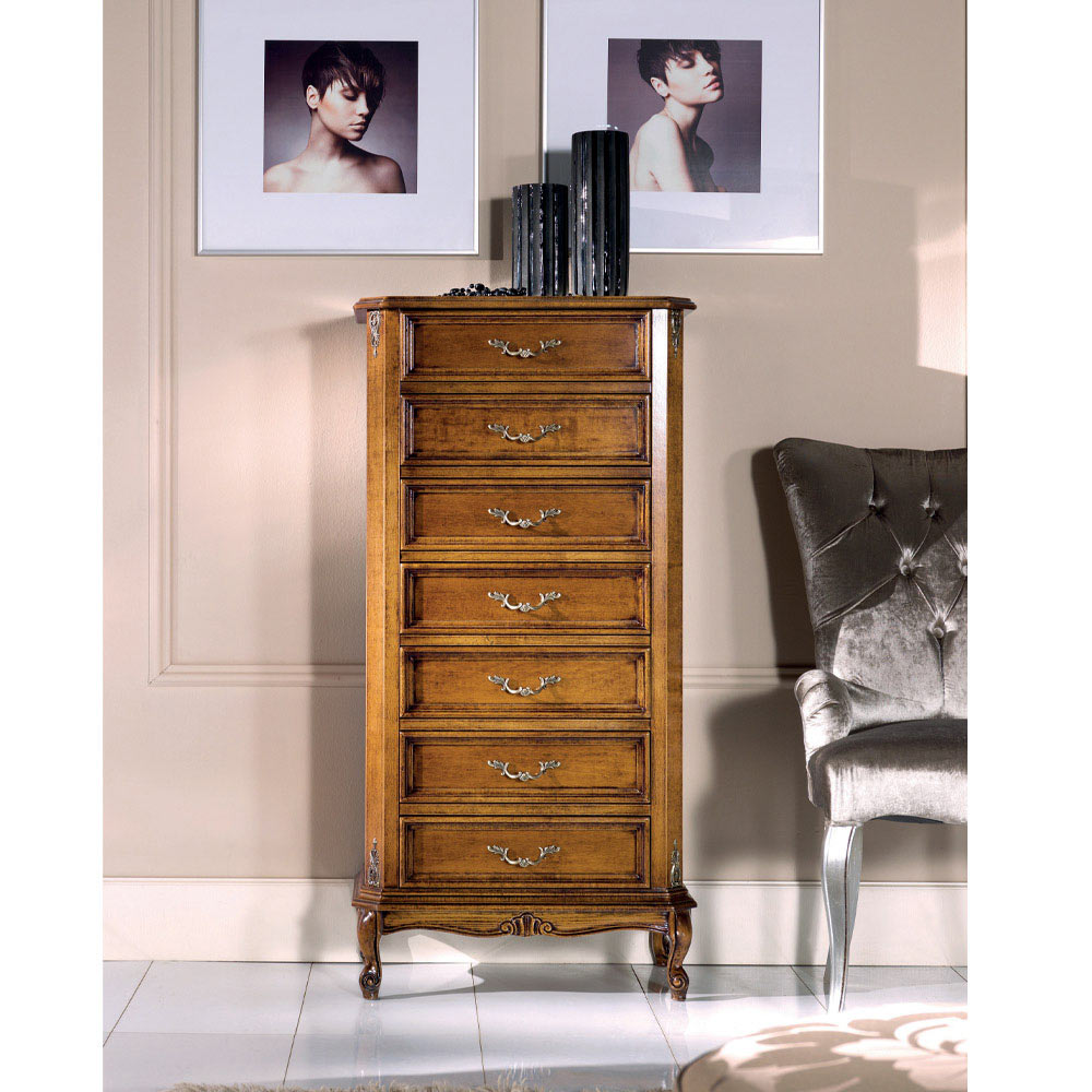 Kommode i klassisk stil med 7 eller 5 skuffer i træ Made in Italy.