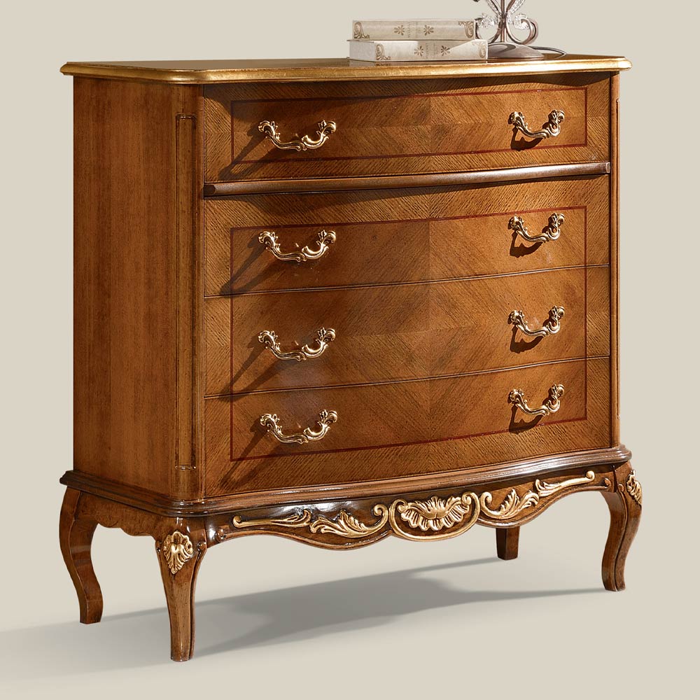 Tilgængelige finish:- Bassano valnød med gulddetaljer og sildebensindlæg;