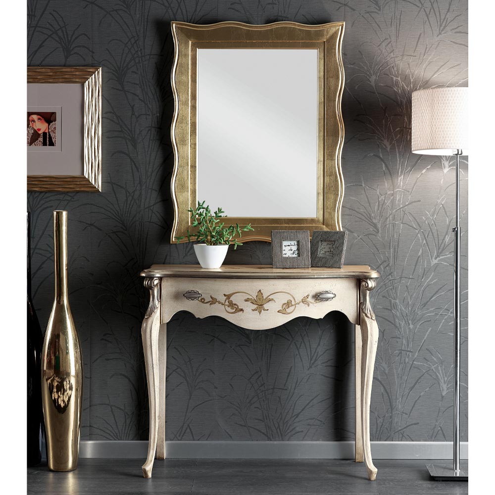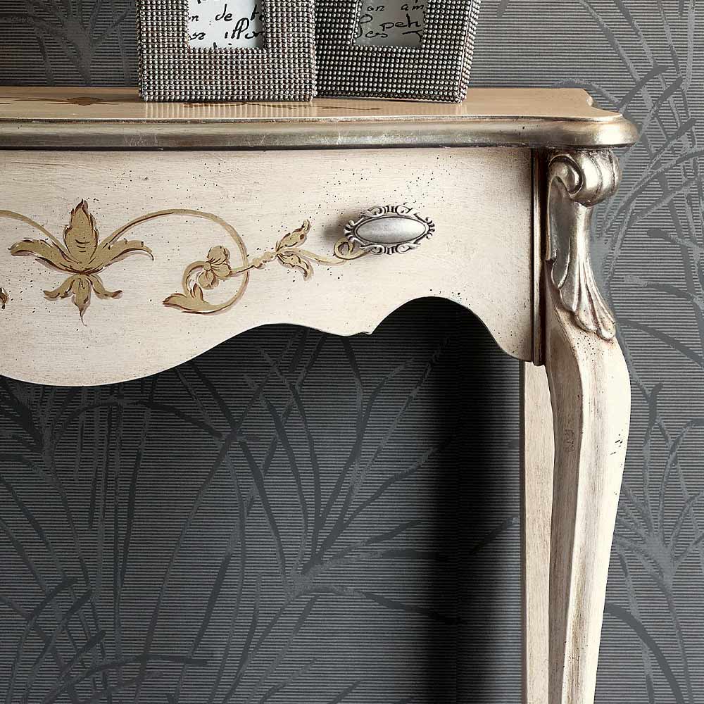 hall konsol lavet af træ komplet med praktisk og rummelig skuffe tilgængelig i Bassano valnød, antik hvid og sort og sølv finish. Et unikt og raffineret supplement, fuldstændig