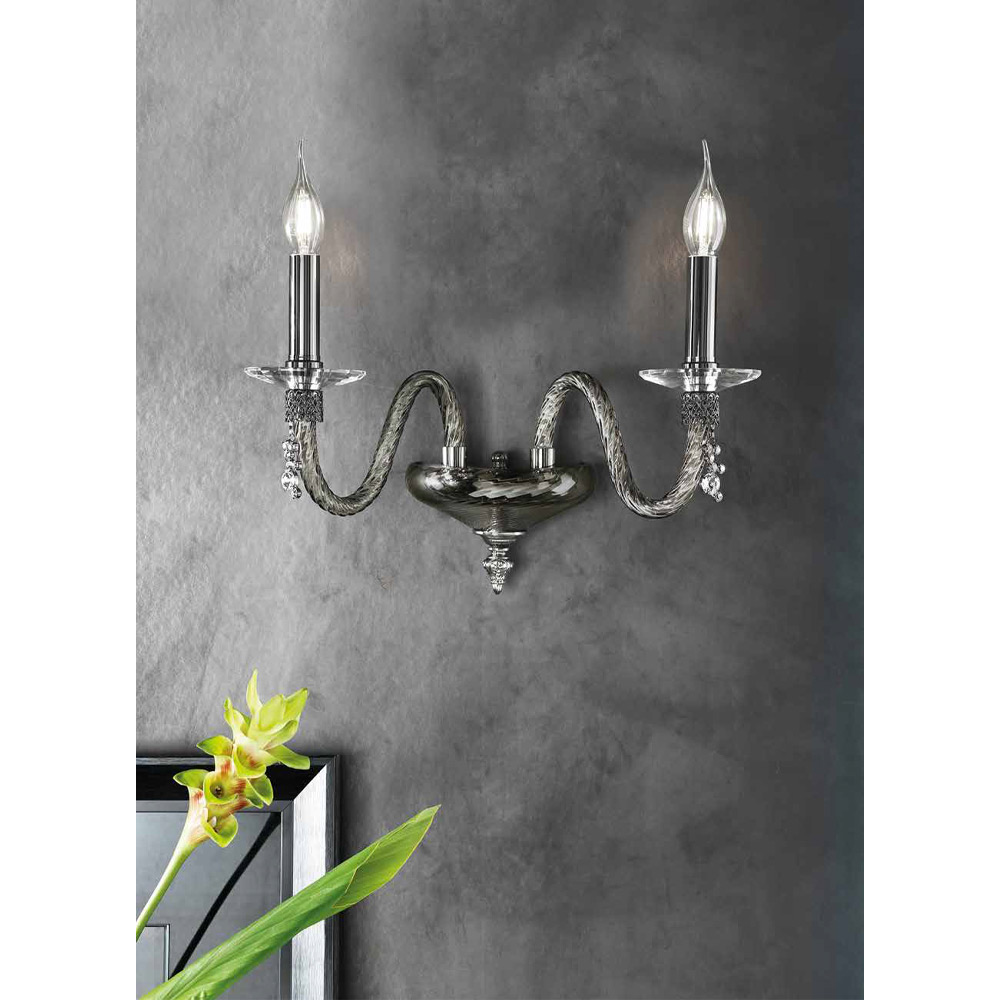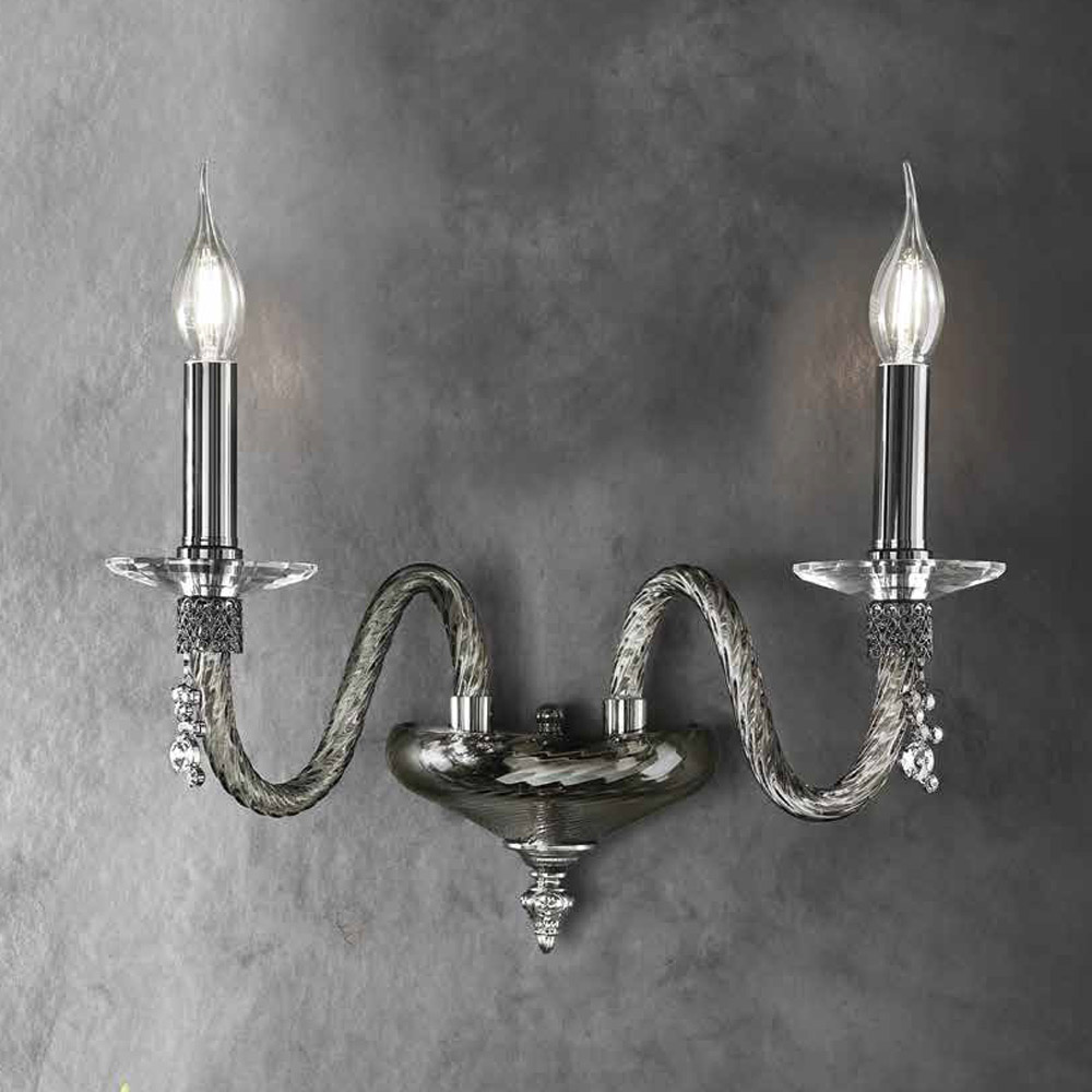 Applilque 2 lys i blæst glas og juveldetaljer, italiensk luksus.