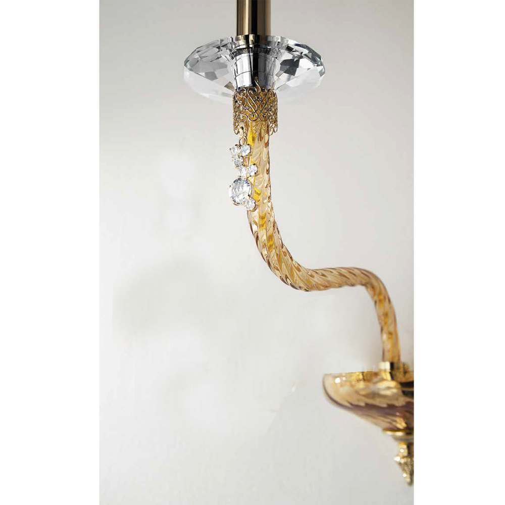 Tilgængelige finish:- Krop i hvidt glas - detaljer i gennemsigtigt glas - skinnende guldmetal;