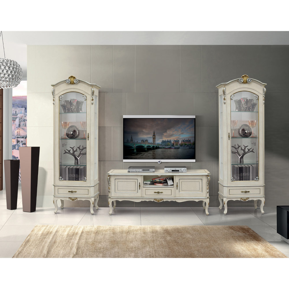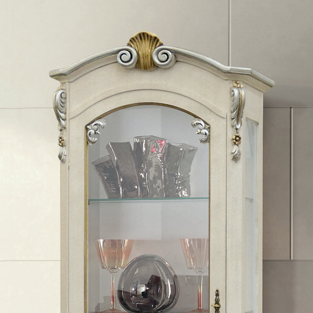 Klassisk vitrine med låge og skuffe i hvidt træ Made in Italy.