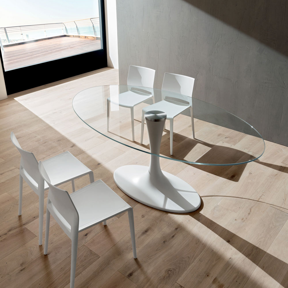 originale former fødes en ekstremt kreativ indretningsløsning, der gør enhver spisestue eller køkken til et nærmest futuristisk miljø. Det, der kendetegner dens æstetik, hvilket gør den til et unikt produkt af sin art, er den syntetiske marmorbase, som udover at tilbyde fremragende stabilitet, beriger den med sin