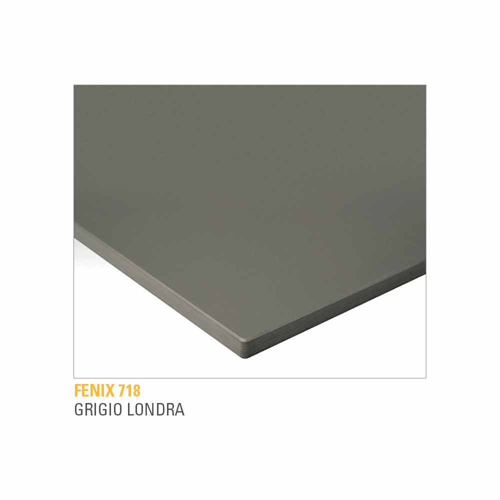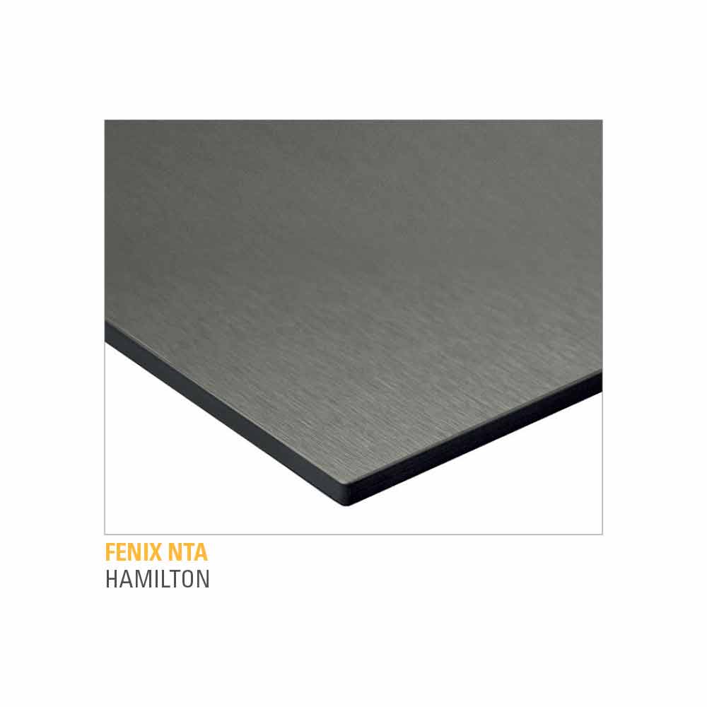 lamineret fenix plade (tykkelse 10 mm) udstyret med mdf støtte (tykkelse 22 mm) og ben i sort anodiseret børstet