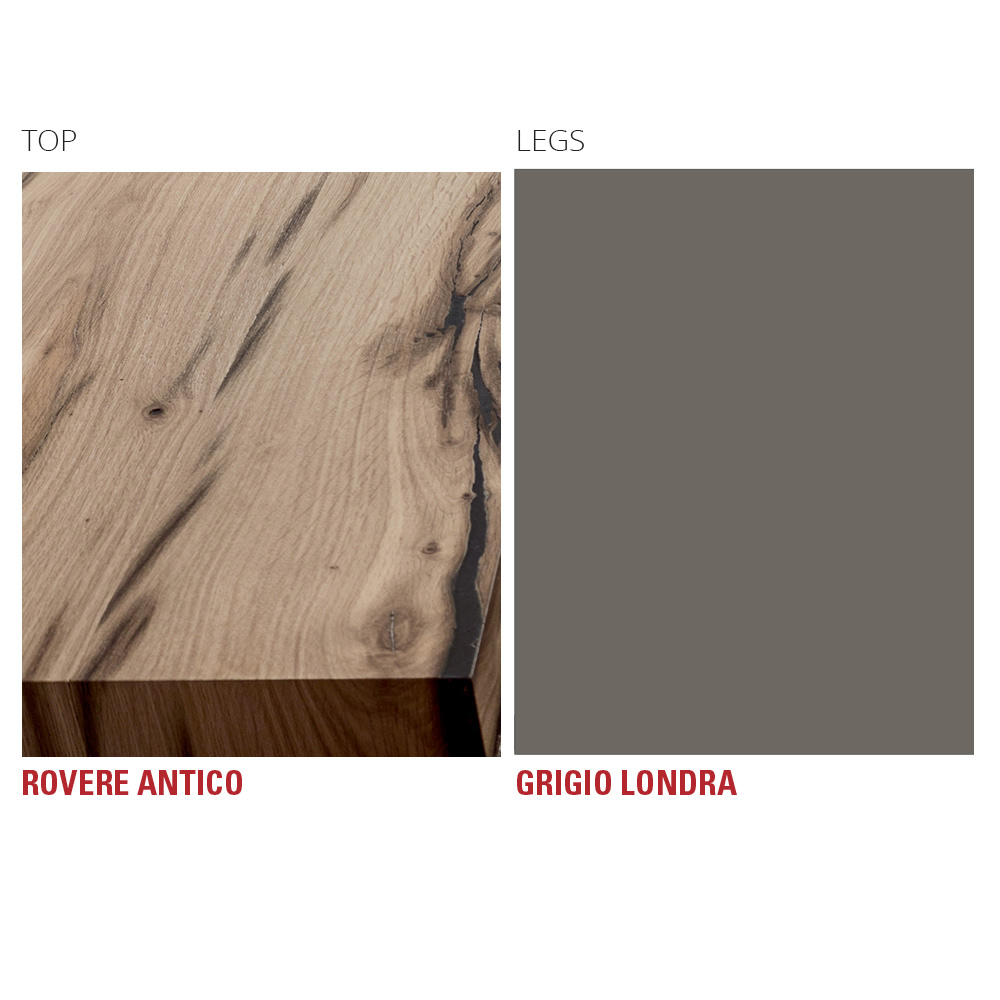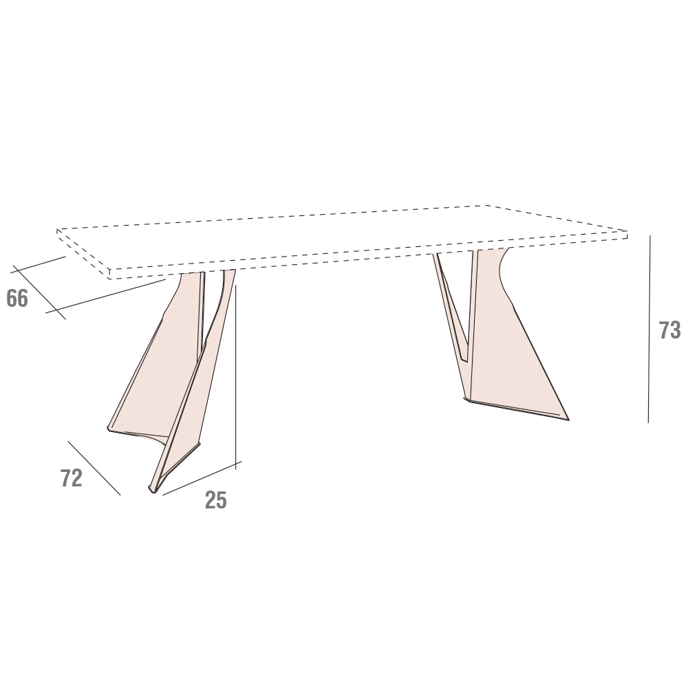 imponerende og majestætisk design . Træets tidløse elegance og dets vidunderlige årer blander sig perfekt med en base med nærmest futuristiske former, der giver bordet dets