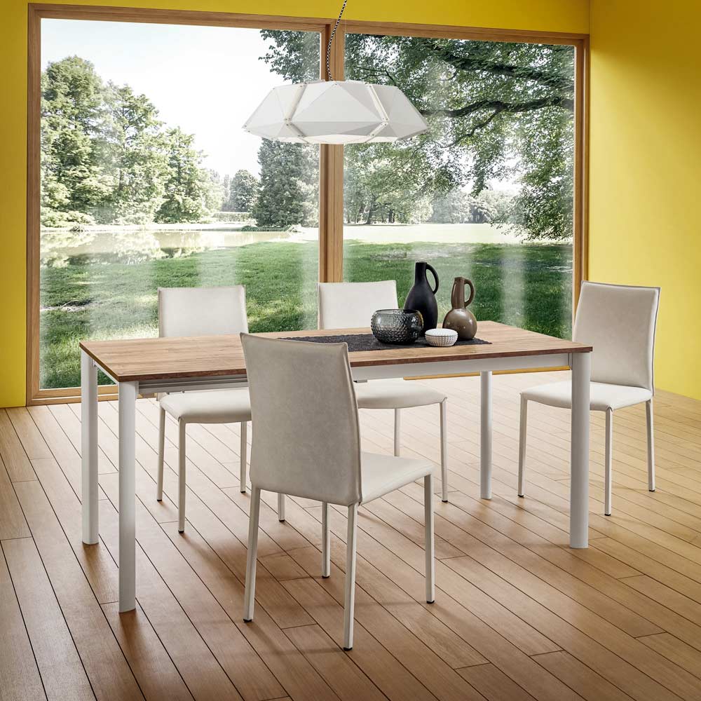 metalstruktur helt dækket af øko-læder med skumpolstring. Stolen repræsenterer i stigende grad et grundlæggende element i ens hjemmemiljøer, ikke kun for dens funktionalitet, men også og frem for alt for dens æstetiske værdi, der er afgørende for at skabe perfekt harmoni med de omgivende indretningselementer. Dette komplement formår at dække begge roller på samme tid ved at tilbyde et design med