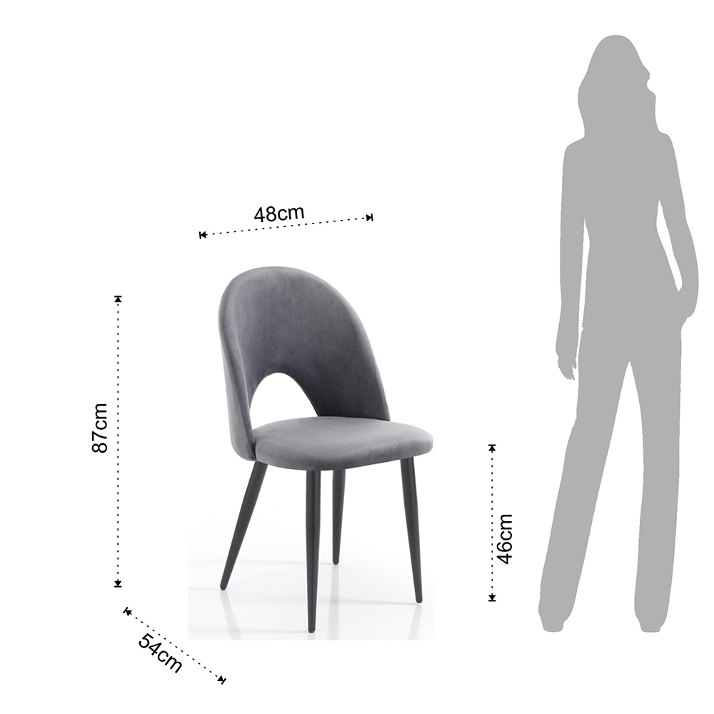 Køkkenstol i fløjlseffekt stof og malet metal, 4 stk.