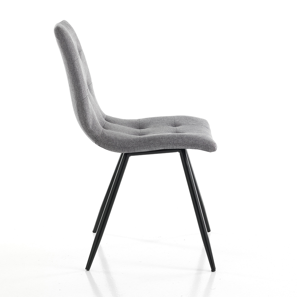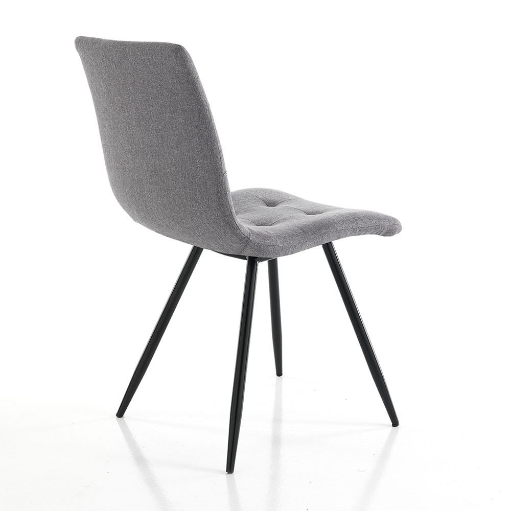 Køkken- eller spisestuestol med ben af mat sort lakeret metal og polstret sæde betrukket med gråt stof . Det kombinerer perfekt med alle stilarter af moderne møbler, fra de mest minimale til de mest raffinerede, og giver elegance til rummet uden at tage øjnene fra spisebordet, som repræsenterer omdrejningspunktet for miljøet, men skaber sammen med det en vidunderlig harmoni af stilarter for et originalt resultat, raffineret og med en stærk moderne personlighed .