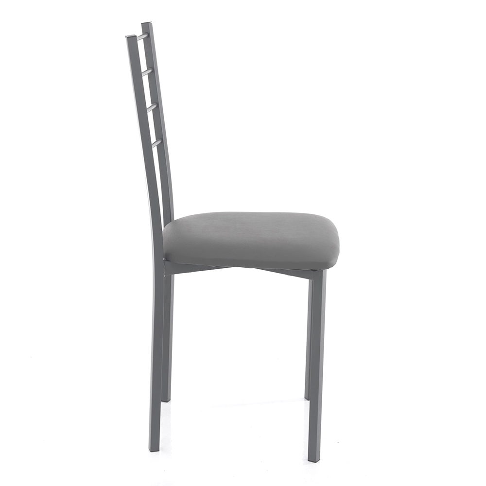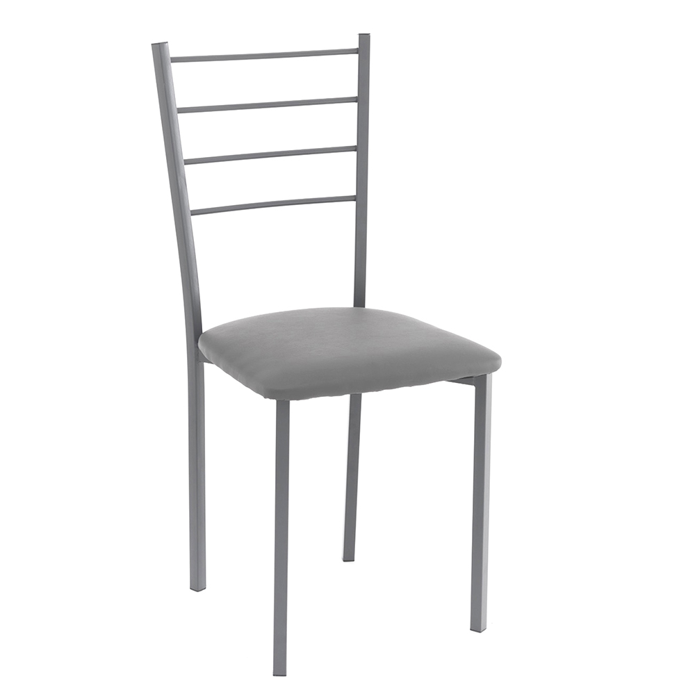 - sæde i gråt syntetisk læder med ben i grålakeret metal;
