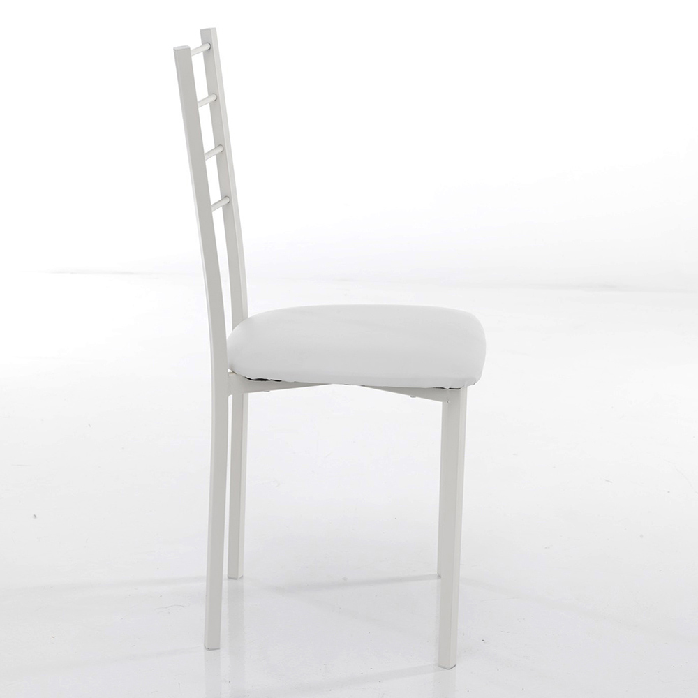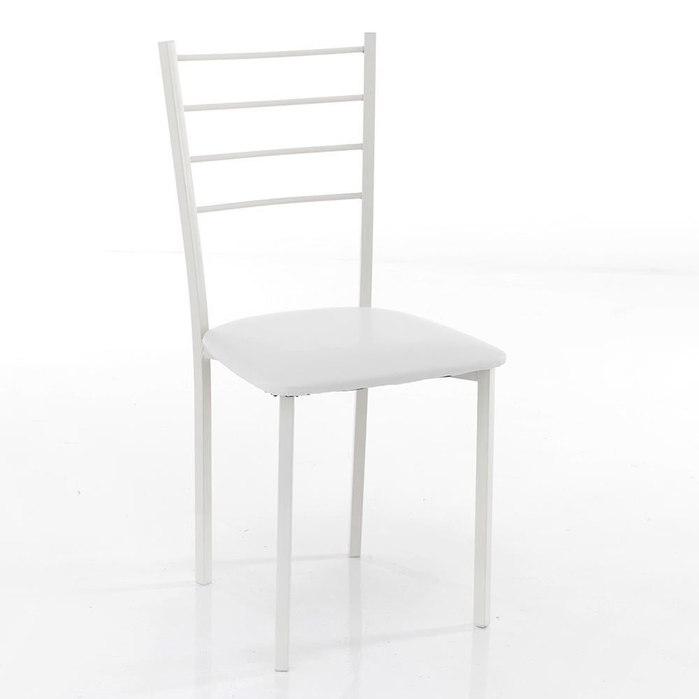 - sæde i hvidt syntetisk læder med ben i hvidlakeret metal;