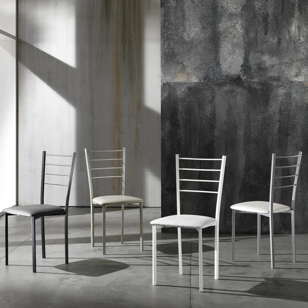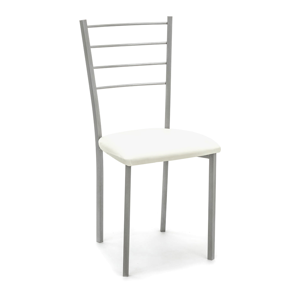 Køkkenstol i syntetisk læder med 4-delt metalstel.