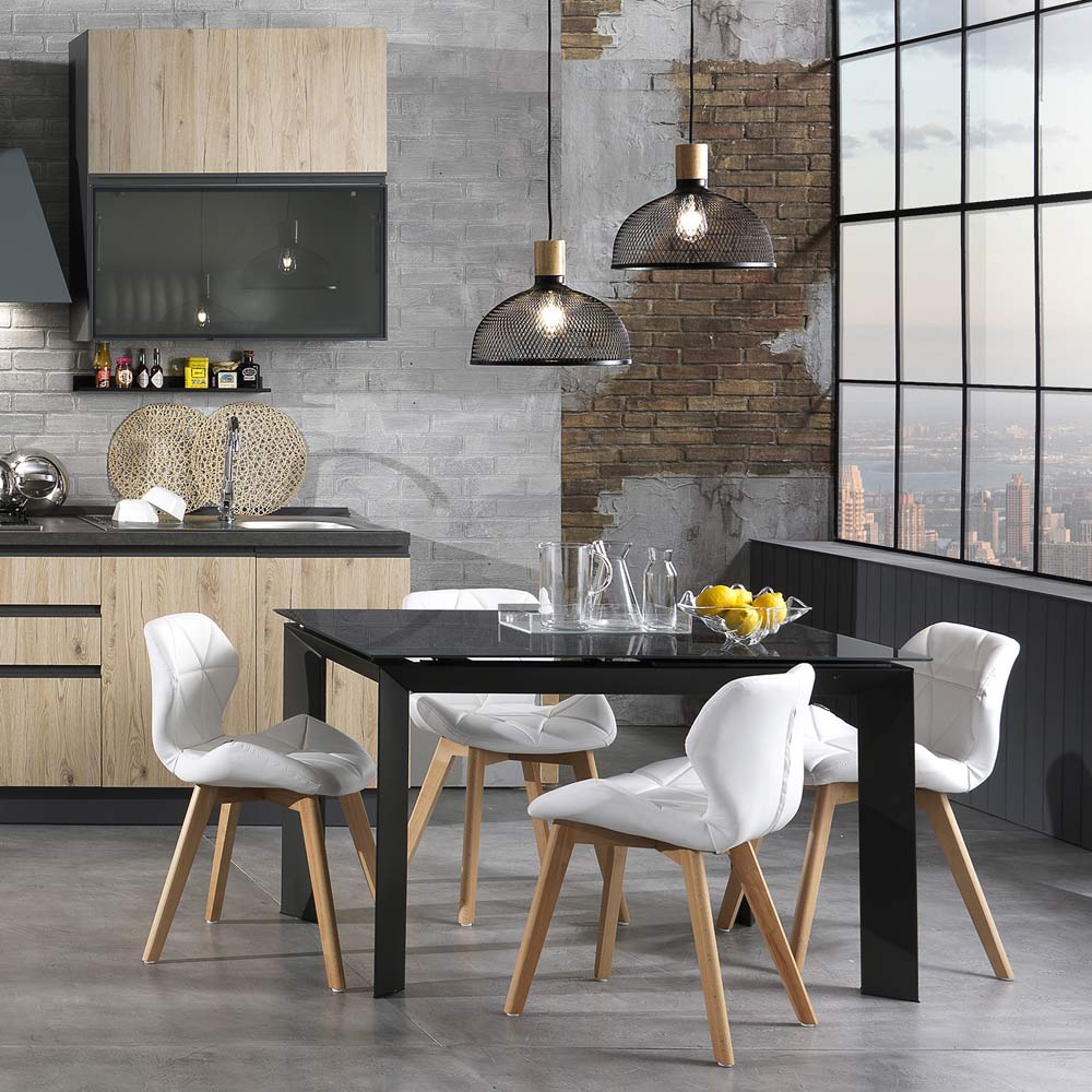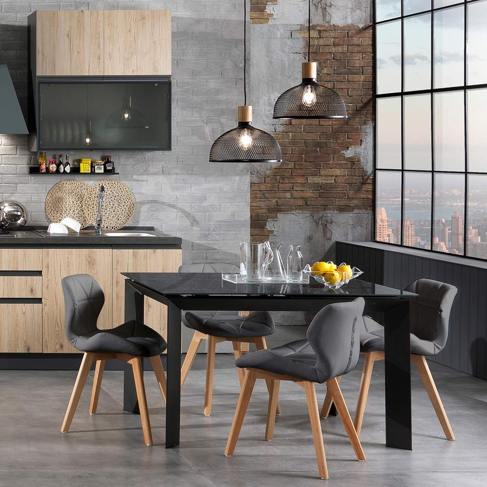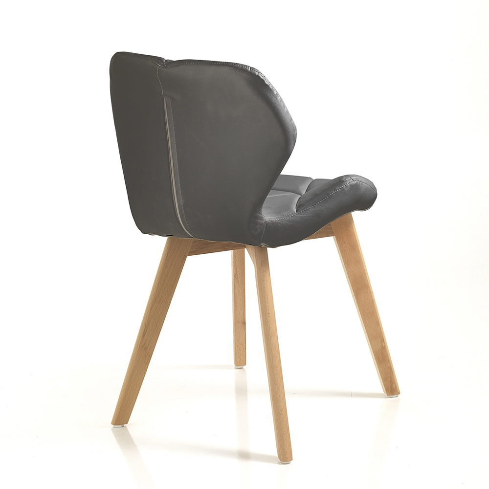 Moderne spisestuestol i træ betrukket med 2-delt syntetisk læder.