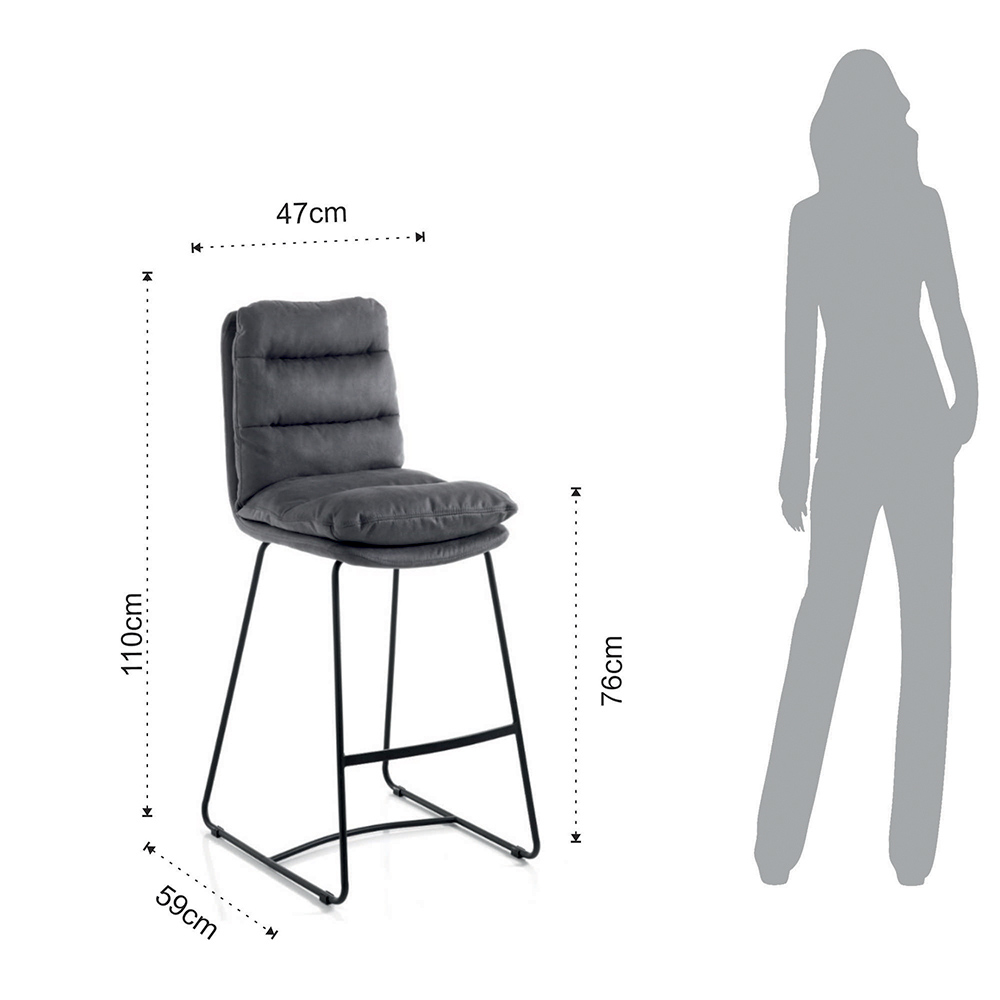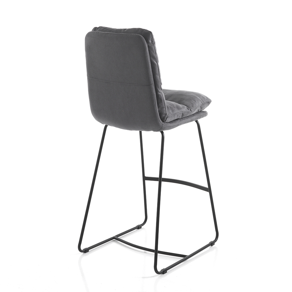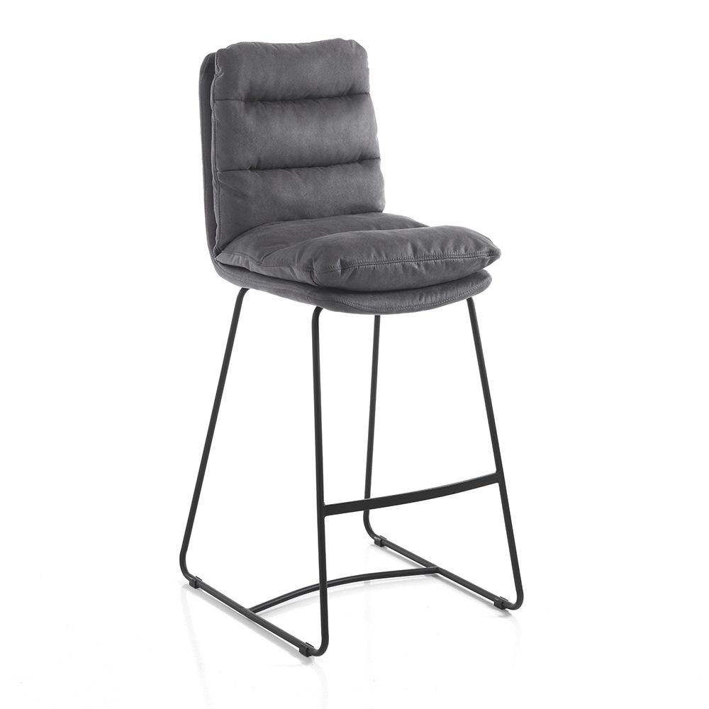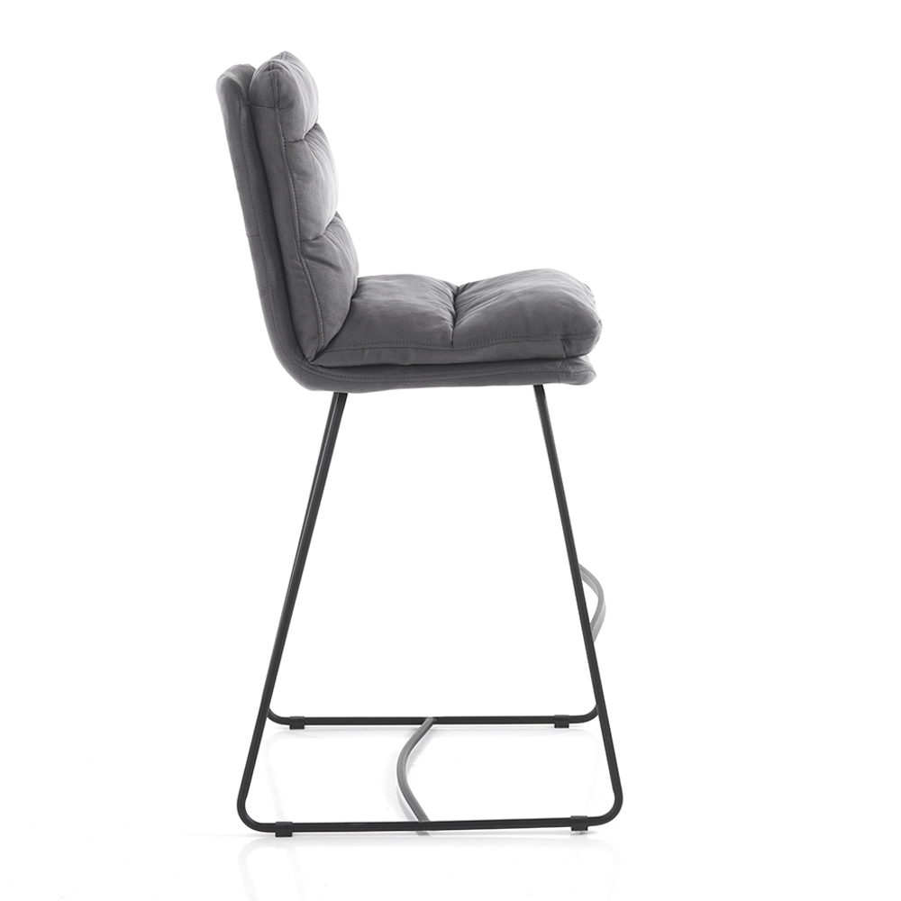Høj køkkentaburet med slædestruktur i matsort lakeret stål komplet med praktisk fodstøtte og polstret sæde betrukket med blød mikrofibergrå fløjlseffekt . Et produkt, hvis æstetik er præget af enkle linjer og former beriget af den elegante quiltning, der dækker hele sædet og giver endnu mere en vidunderlig følelse af komfort. Ideel til at blive placeret i spisestuen og køkkenet, men også i kontraktrum som barer og restauranter takket være det elegante og raffinerede design og dets alsidige brug.