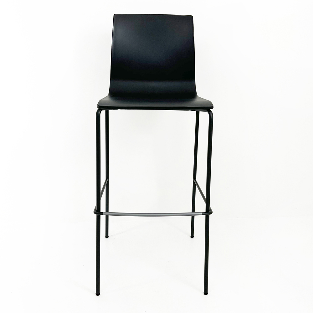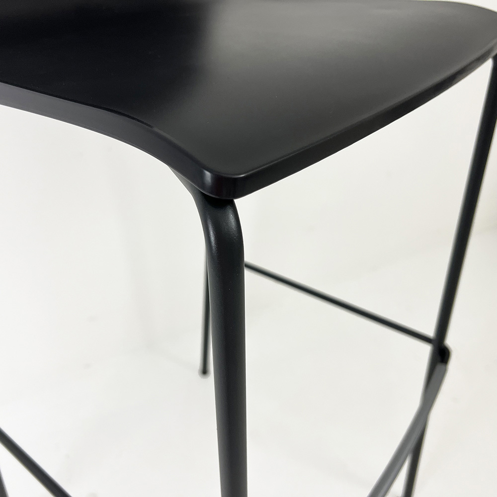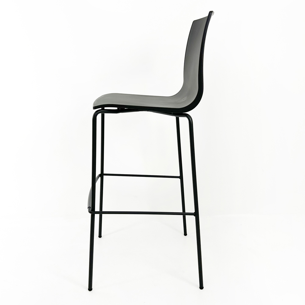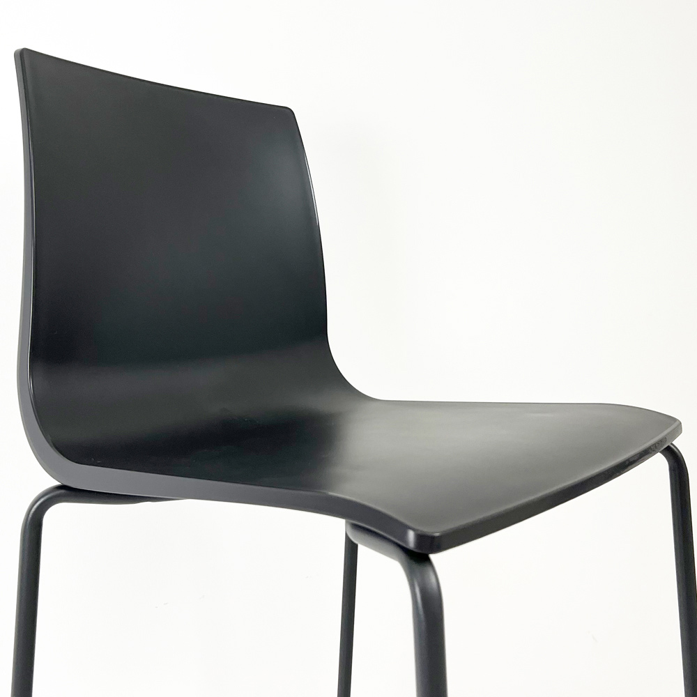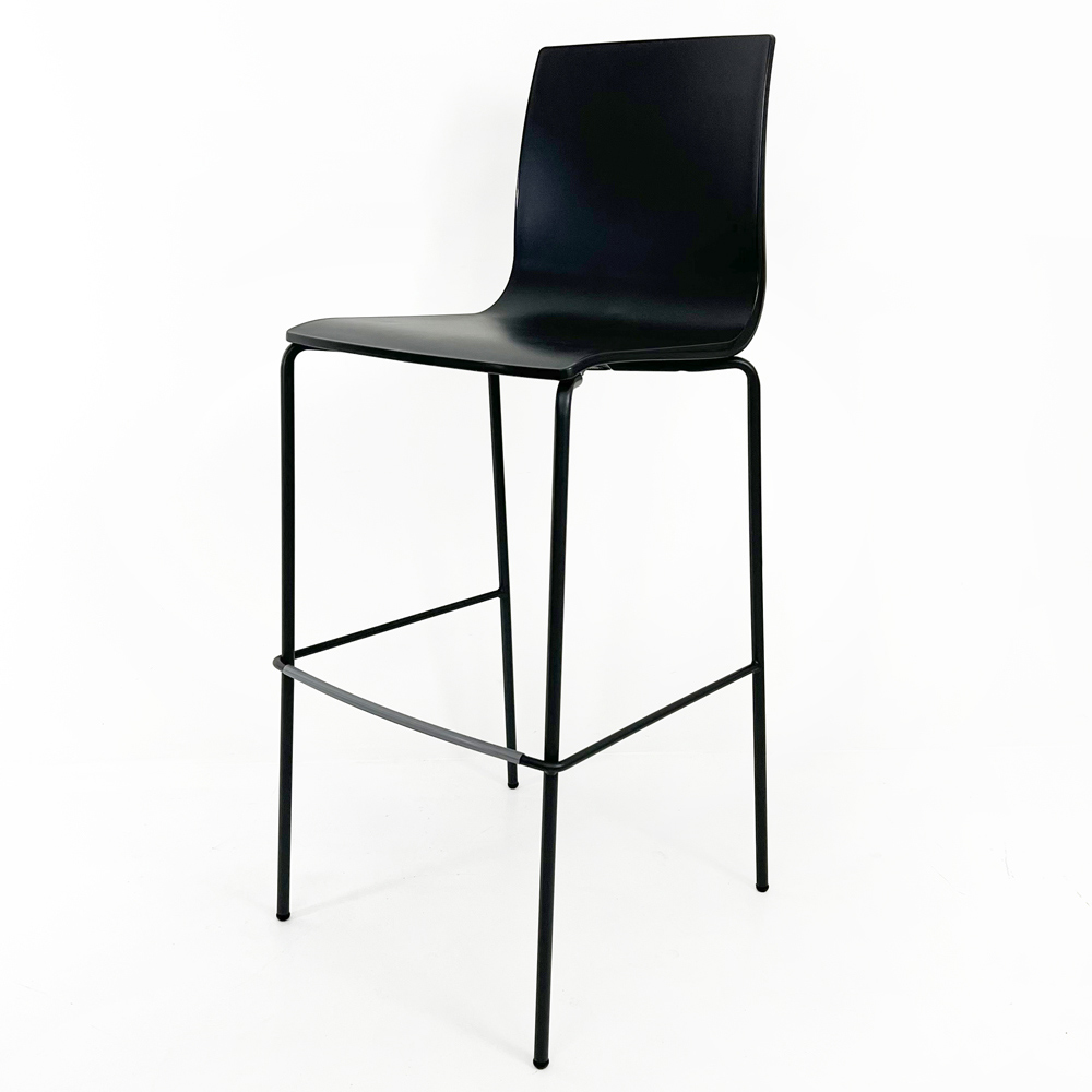 Moderne skammel . Fremstillet i Italien, bestående af en skal af genanvendelig technopolymer med antracit finish og en 4-benet struktur med en fodstøtte i rørformet stål i samme farve som sædet. med en diameter på 16 mm, hvilket muliggør stabling af op til maksimalt 4 enheder.
